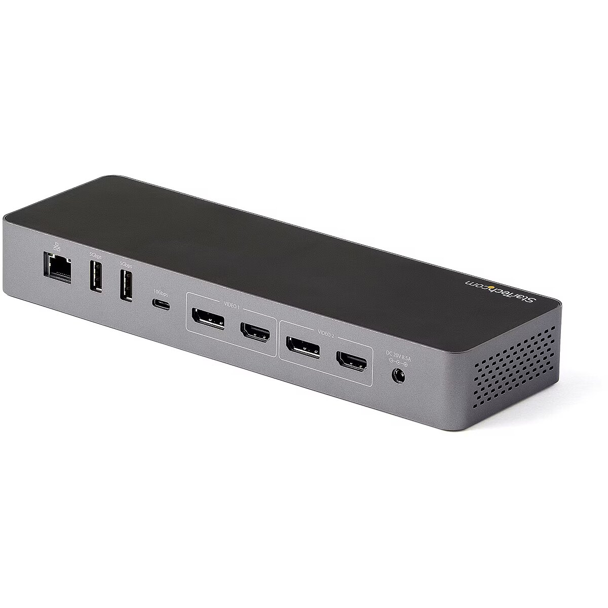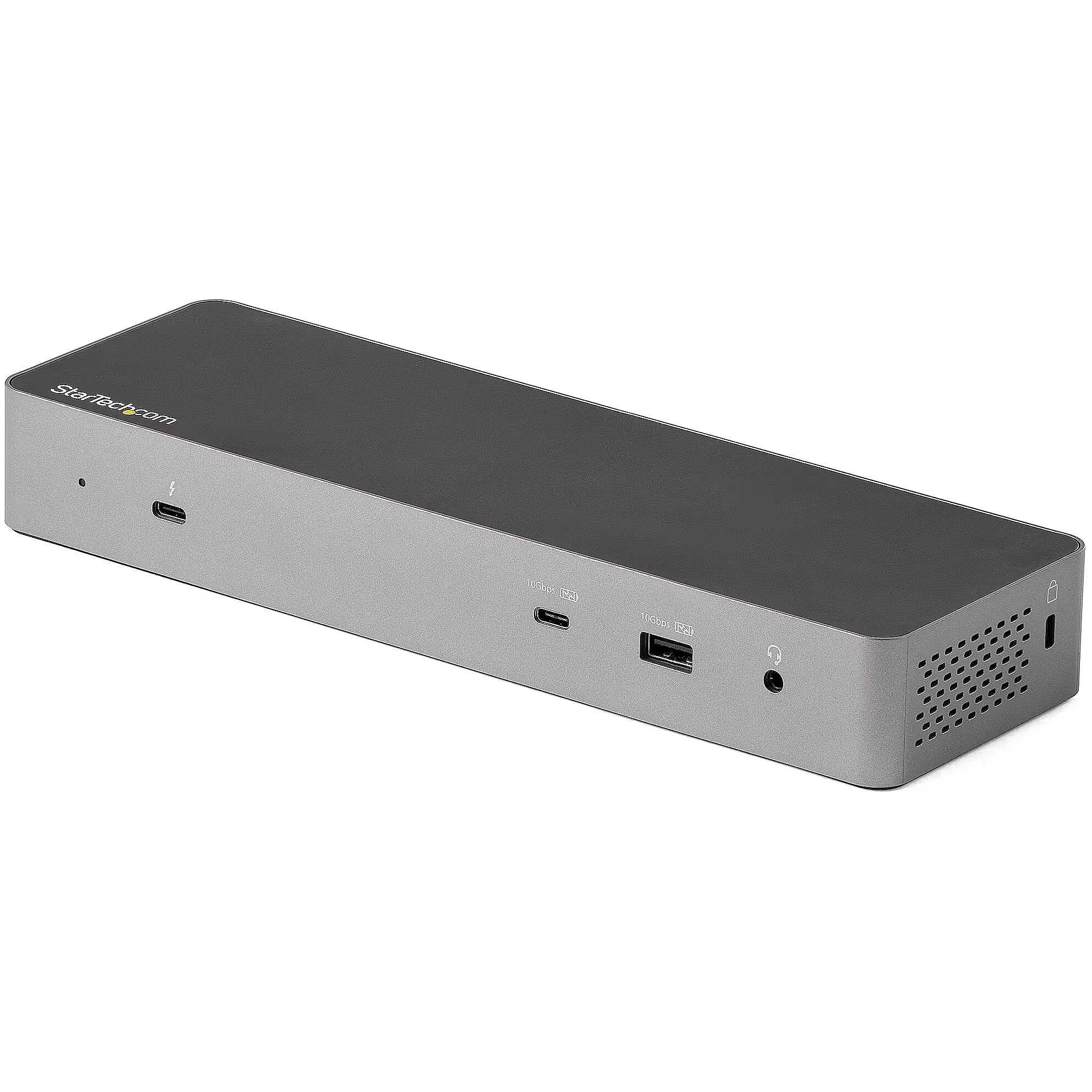 LongDesc - Dual DP 4K 60Hz or Dual HDMI 2.0 Monitors | macOS & Windows®| 5x USB 3.0 Ports | 96W PD | 0.8 m CableA high-performance Thunderbolt™ 3 Certified docking station with USB Type-C compatibility featuring dual monitor 4K 60Hz DSC support from either Dual DisplayPort or dual HDMI 2.0 video outputs, 96W Power Delivery (100W peak power), 5x USB 3.2 Hub with 2x BC 1.2 fast charging ports, gigabit Ethernet (PXE Boot/Wake-on-LAN) & headset ports.Flexible Dual Display OutputsThis universal docking station features both dual DisplayPort 1.4 (Single 8K30 on HBR3 host) and dual HDMI video outputs that can be configured in three different ways:DisplayPort + DisplayPortHDMI + HDMIDisplayPort + HDMIResolutions and video outputs are host-dependent.Thunderbolt 3 or 4 LaptopSingle MonitorDual MonitorsIntel Laptops with 11th Gen or Later8K 30Hz / 5K 60Hz / 4K 60Hz4K 60HzIntel Laptops with 10th Gen or Earlier5K 60Hz / 4K 60Hz4K 60HzApple M1 & M2 Pro/Max MacBooks5K 60Hz / 4K 60Hz4K 60HzApple M1 & M2 MacBooks5K 60Hz / 4K 60HzMirrored Display OnlyIntel Based Macbook's with Thunderbolt 35K 60Hz / 4K 60Hz4K 60HzUSB-C Laptop (No Thunderbolt)Single MonitorDual MonitorsLaptops with Intel 10th Gen or Later(Requires DP 1.4 Alt Mode)4K 60Hz4K 30HzLaptops with DP 1.2 Alt Mode4K 30Hz1080p 60HzMore Downstream USB PortsFeaturing an integrated USB 3.2 hub, this docking station has 5 downstream USB ports:Front Facing:• 1x USB 3.2 Gen 2 Type-C (10 Gbps) with 15W (3A, 5V) Charging• 1x USB 3.2 Gen 2 Type-A (10 Gbps) with B.C. 1.2 Fast-ChargingBack Facing:• 2x USB 3.2 Gen 1 Type-A (5 Gbps)• 1x USB 3.2 Gen 2 Type-C (10 Gbps)Easy to Set Up & ManageThis universal Thunderbolt 3 / USB-C Dock has an automatic driver setup and includes a longer 0.8 meter (2.6 ft) Thunderbolt 3 host cable, front-facing TB3/USB-C host port, front-facing LED indicator, mounting holes for the optional bracket, k-slot for security lock & MAC address changer utility.Enhance Productivity and Device Management with the StarTech.com Connectivity Tools ApplicationDeveloped to improve performance and security, StarTech.com Connectivity Tools is the only software suite on the market that works with a wide range of IT connectivity accessories. The software suite includes:•Advanced Windows Layout Utility : To setup and save custom windows layouts.•Mac Address Pass-Through Utility : To improve network security.•USB Event Monitoring Utility : To track and log connected USB devices•Wi-Fi Auto Switch Utility : Enabling users to quickly access faster network speeds via wired LAN.For more information and to download the StarTech.com Connectivity Tools application, please visit: www.StarTech.com/Connectivity-ToolsTB3CDK2DHUE is backed by a StarTech.com three-year warranty and free lifetime technical support.The StarTech.com Advantage