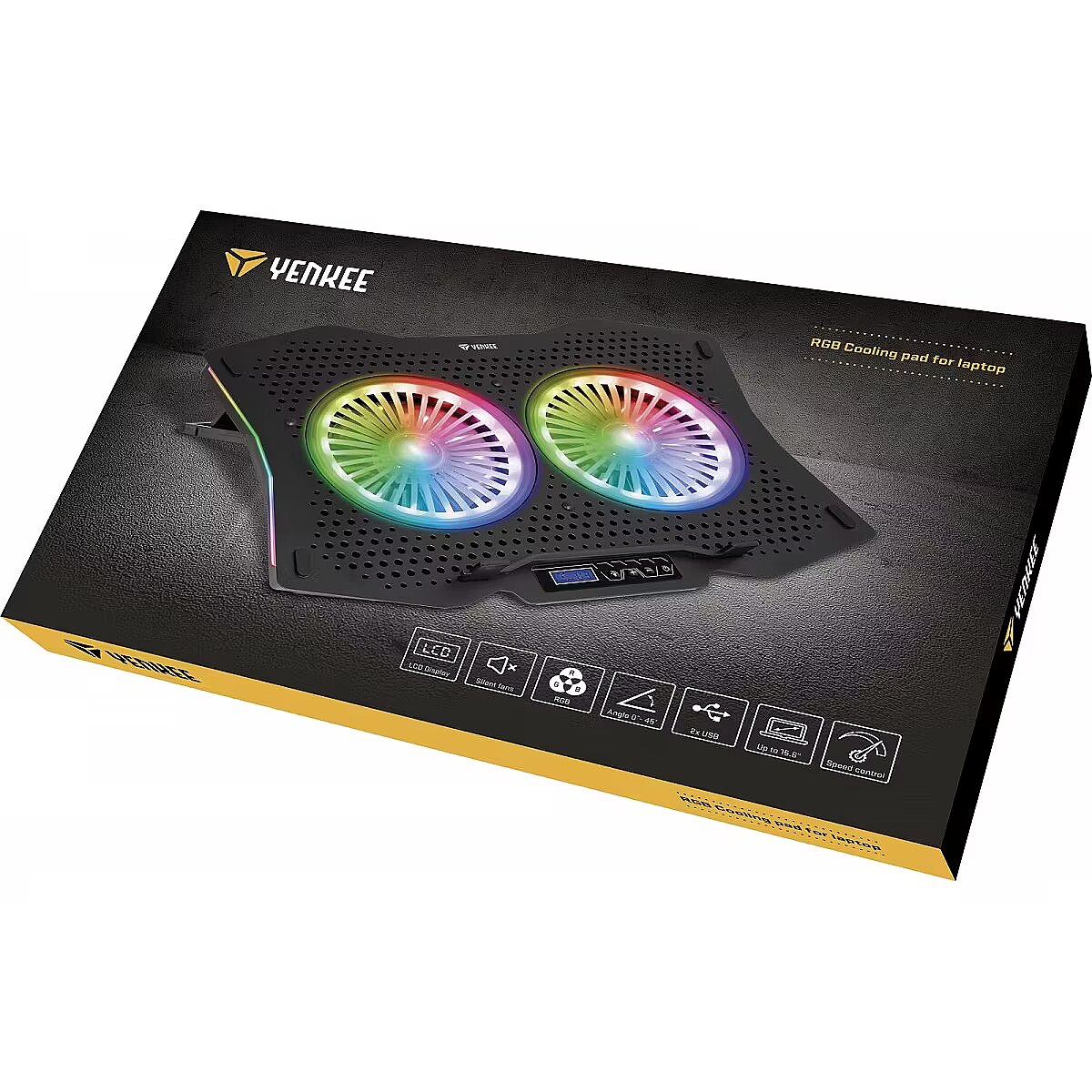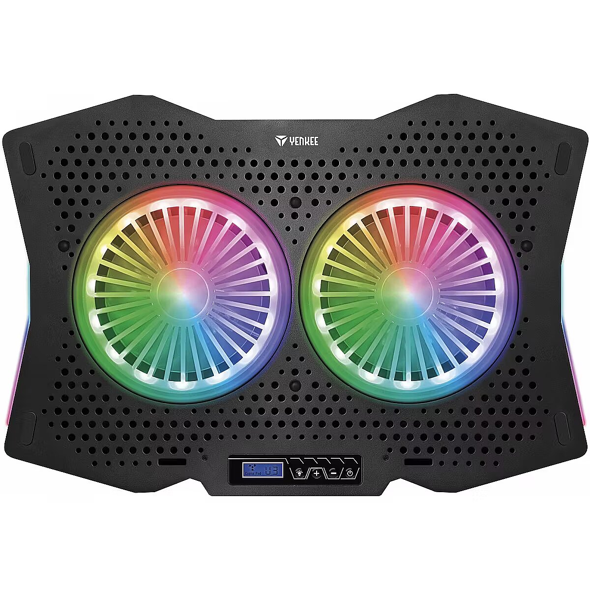 Description - RGB podkładka chłodząca pod notebook 10 trybów podświetlania RGB Panel sterowania z wyświetlaczem LCD Regulowana prędkość wentylatora i kąt podkładki