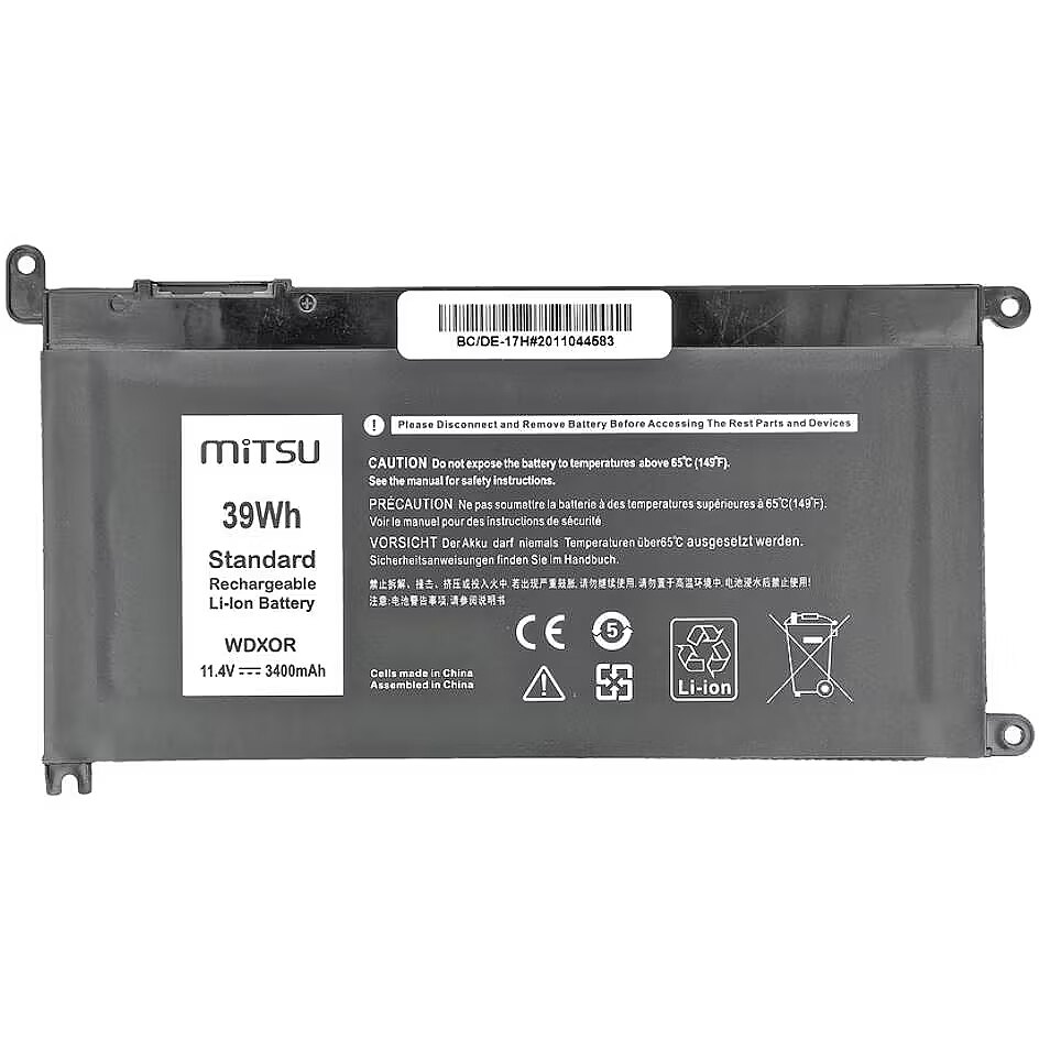 This product Mitsu Battery for DELL Vostro 14 (5468), Inspiron 15 (5568), 3400 mAh (39Wh), 11.4 Volt