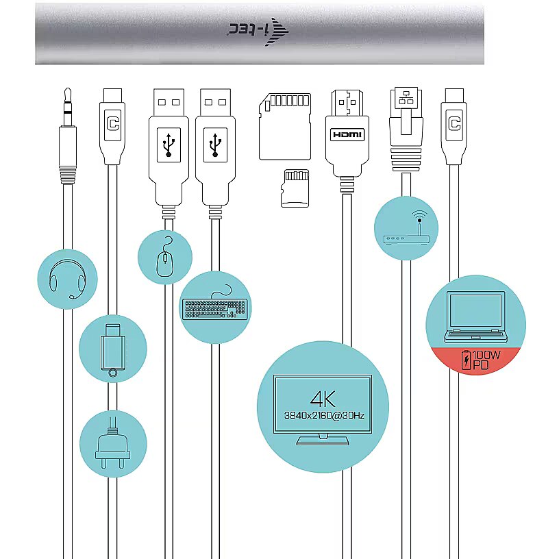 ShortSummaryDescription - i-tec Metal Cooling Pad for notebooks (up-to 15.6”) with USB-C Docking Station (Power Delivery 100 W), Wired, USB 3.2 Gen 1 (3.1 Gen 1) Type-C, 100 W, 3.5 mm, 10,100,1000 Mbit/s, Grey