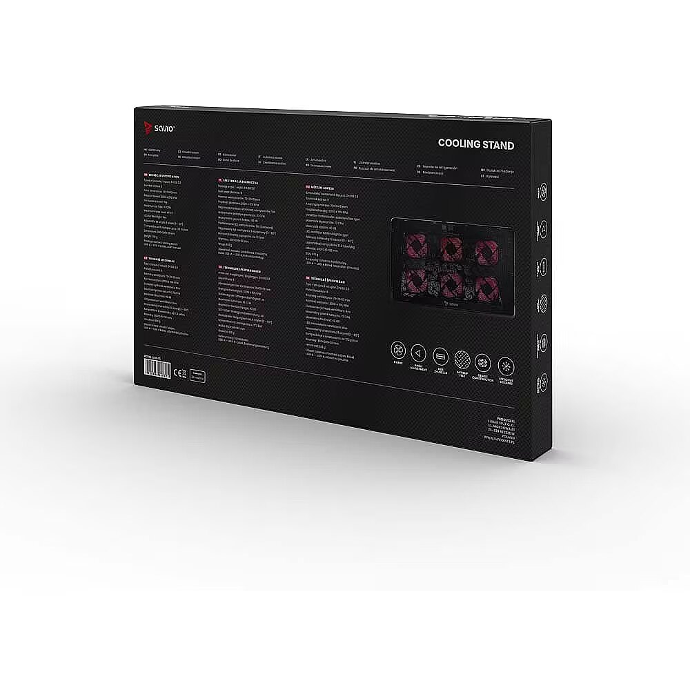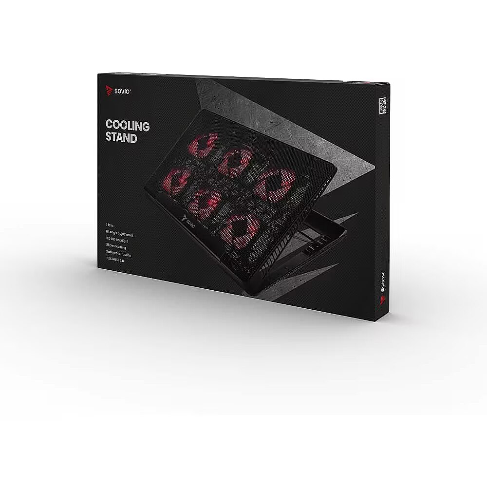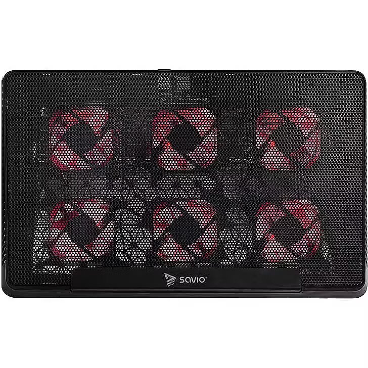 LargeDescHTML - SAVIO COS-01 Cooling stand COS-01 is a powerful cooling stand for laptops. The device is a universal solution for any laptop up to 17.3 inches in screen size. It helps to maintain the optimum working temperature for your device. Six FansIts ergonomic shape and outstanding performance make it ideal for professional gamers. The model has six red LED backlit fans with a speed of 2000+-15% RPM. It allows a stable reduction of excess heat regardless of the laptop’s workload. In addition, the LEDs give the stand a more individual, gaming character. Angle adjustmentCOS-01 allows you to adjust the stand to your preferences. The 6-step angle adjustment enables you to optimally set the height of the cooling stand to your individual preferences. It ensures proper posture, eliminating neck fatigue. It guarantees even greater comfort when playing games. Hub 2xUSB 2.0The stand features two USB 2.0 ports. They provide you with options when it comes to connecting additional devices. It increases the functionality and allows for a more efficient arrangement of other accessories. Antislip feetThe materials used in the COS-01 model protect the laptop against unnecessary movement and slipping. The rubber and antislip feet reinforce the stability. You can safely dedicate your attention to playing your favourite games. Stable constructionThe lightweight and sturdy plastic construction with a metal mesh are perfect for demanding gamers. You can use it in various conditions without fear of having less fun.