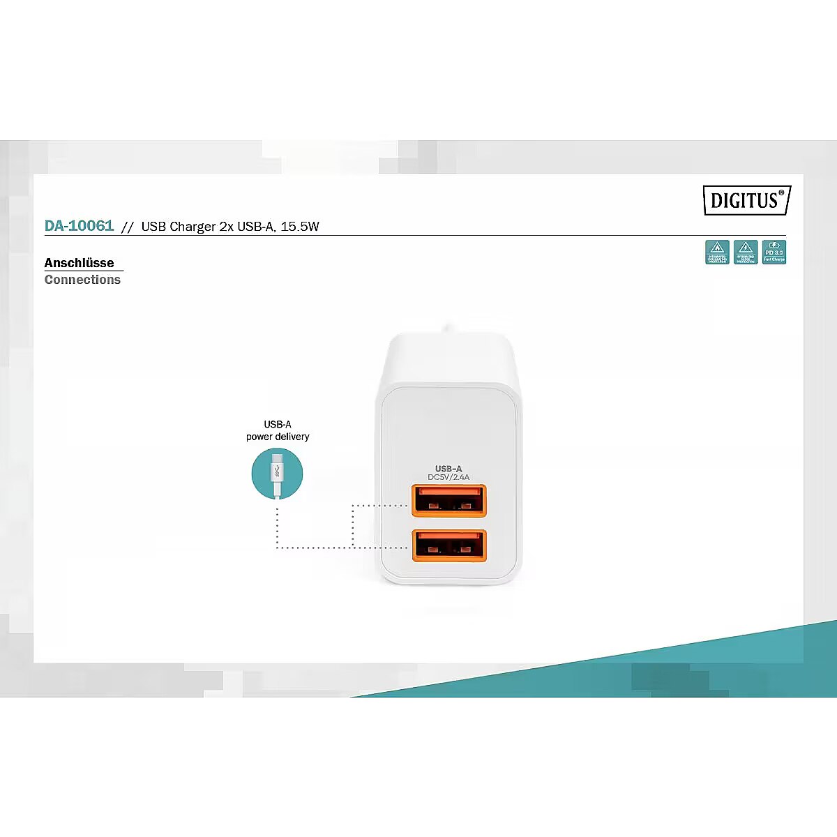 Name - Digitus Charger 2x USB-A 15W 2x 24A weiß