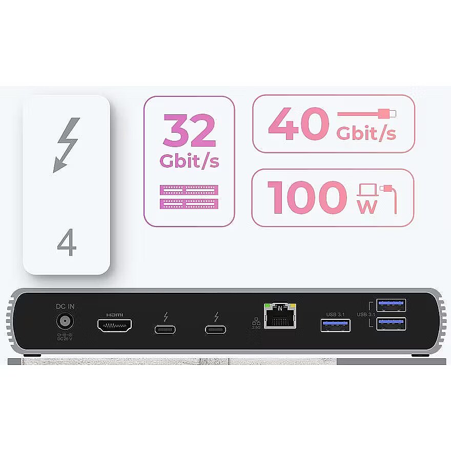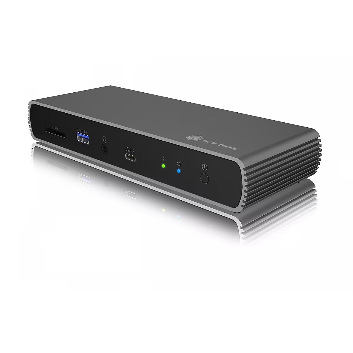 LongSummaryDescription - ICY BOX IB-DK8801-TB4. Connectivity technology: Wired, Host interface: Thunderbolt 4, USB Power Delivery up to: 96 W. Ethernet LAN data rates: 10,100,1000,2500 Mbit/s. Product colour: Anthracite, Black, Compatible memory cards: SD, Data transfer rate: 40 Gbit/s. Power source type: AC, AC input voltage: 100-240 V, AC input frequency: 50 - 60 Hz. Width: 200 mm, Depth: 75 mm, Height: 31 mm