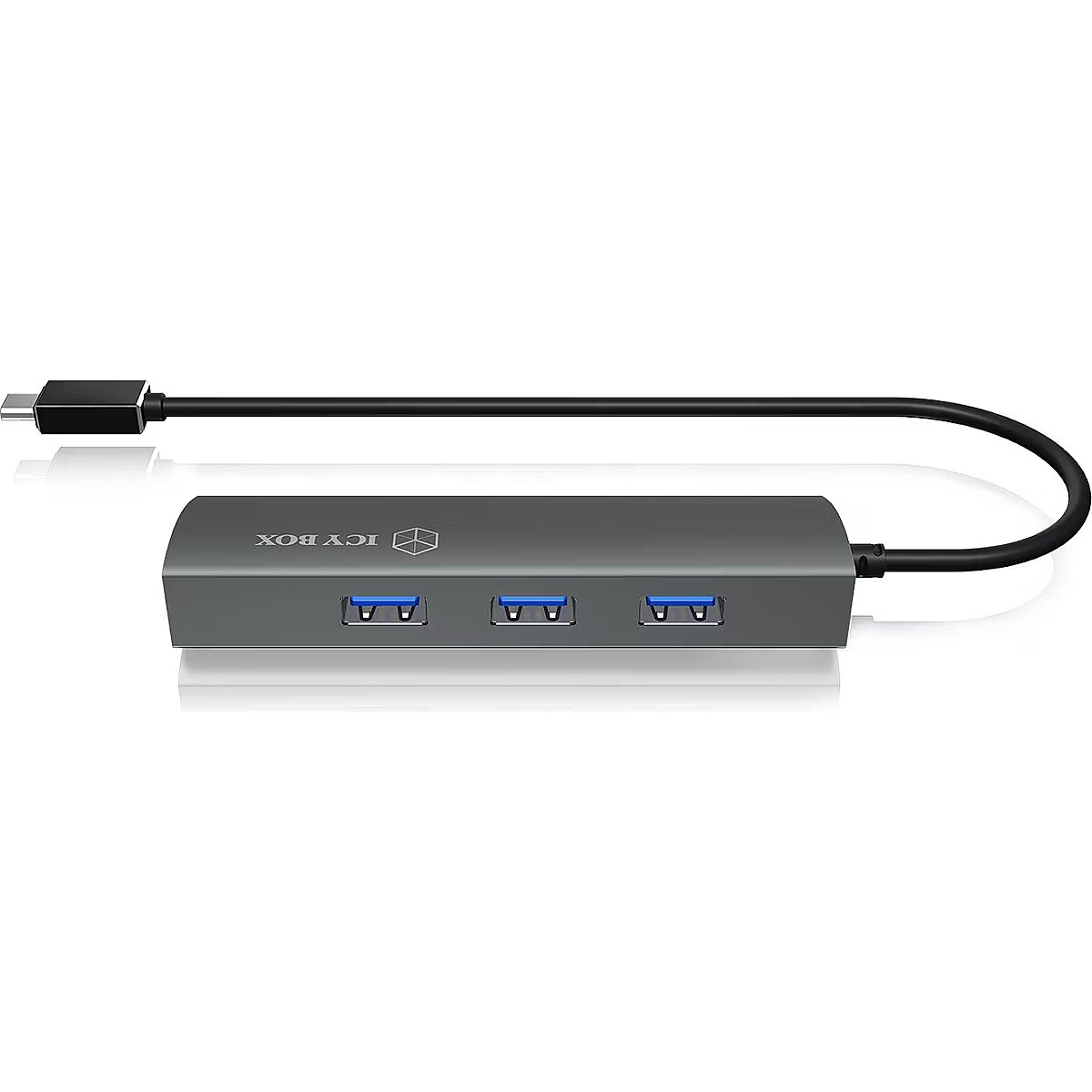 ShortSummaryDescription - ICY BOX IB-HUB1406-C, USB 3.2 Gen 1 (3.1 Gen 1) Type-C, 10,100,1000 Mbit/s, Anthracite, RJ-45, USB 3.2 Gen 1 (3.1 Gen 1) Type-A, Aluminium, China