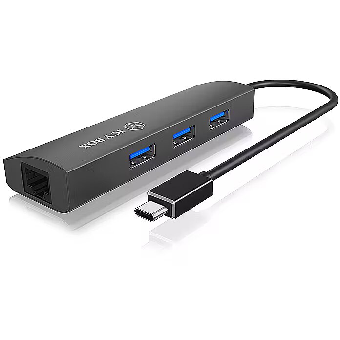 LongSummaryDescription - ICY BOX IB-HUB1406-C. Host interface: USB 3.2 Gen 1 (3.1 Gen 1) Type-C. Ethernet LAN data rates: 10,100,1000 Mbit/s. Product colour: Anthracite, Hub interfaces: RJ-45, USB 3.2 Gen 1 (3.1 Gen 1) Type-A, Housing material: Aluminium. Power supply type: USB/AC. Mac operating systems supported: Mac OS X 10.10 Yosemite, Mac OS X 10.11 El Capitan, Mac OS X 10.12 Sierra, Mac OS X 10.13 High...