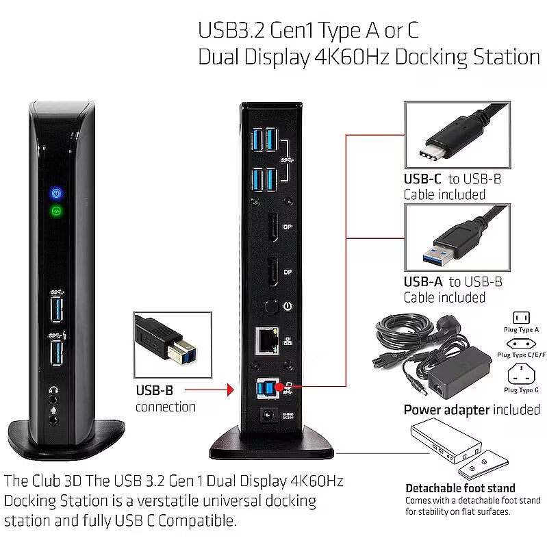 Vendor Homepage - https://www.club-3d.com/en/detail/2423/usb3.2_gen1_type_a_or_c_dual_display_4k60hz_docking_station/