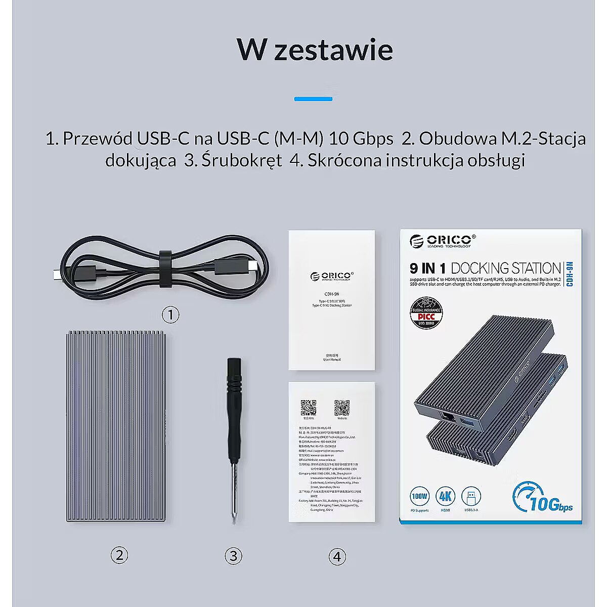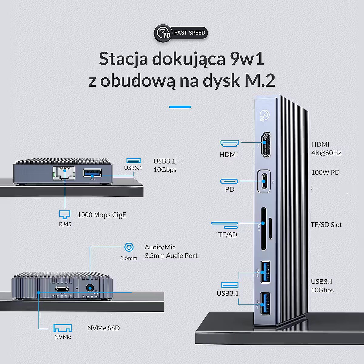 ShortDescription - Orico Stacja dokująca 9w1 z obudową M.2 SSD NVMe