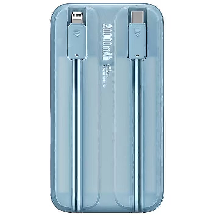 You no longer have to wait until one device is charged to plug in another! The powerbank is equipped with 2 ports - USB-C and USB-A, and has two built-in cables - USB-C and Lightning. Now you can easily charge as many as 4 devices at the same time! With its help you will successfully renew the energy of your smartphone, tablet, wireless headphones, smartwatch or electric toothbrush.