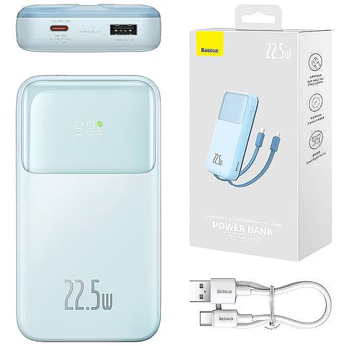 description_en - Charge your devices no matter where you are! The Baseus Comet powerbank is distinguished by its 10,000mAh capacity, making it perfect for everyday use. It supports multiple fast charging standards, and its maximum power reaches up to 22.5W. It has 2 USB ports and 2 built-in cables, so you can easily charge several devices at the same time. It provides a high level of safety, and thanks to its thoughtful design, use will be even more convenient. A USB-C cable is also included.
