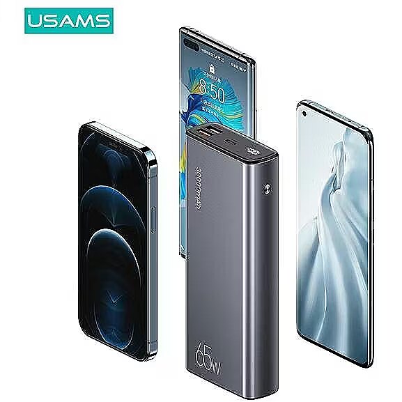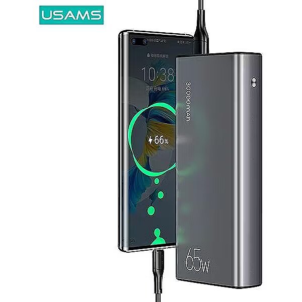 Description - Usams US-CD165 PB59, powerbank with a capacity of up to 30,000mAh, supports 3 fast charging outputs PD + dual QC3.0. Charging power up to 65W so you can charge not only your phone but also your laptop or tablet.