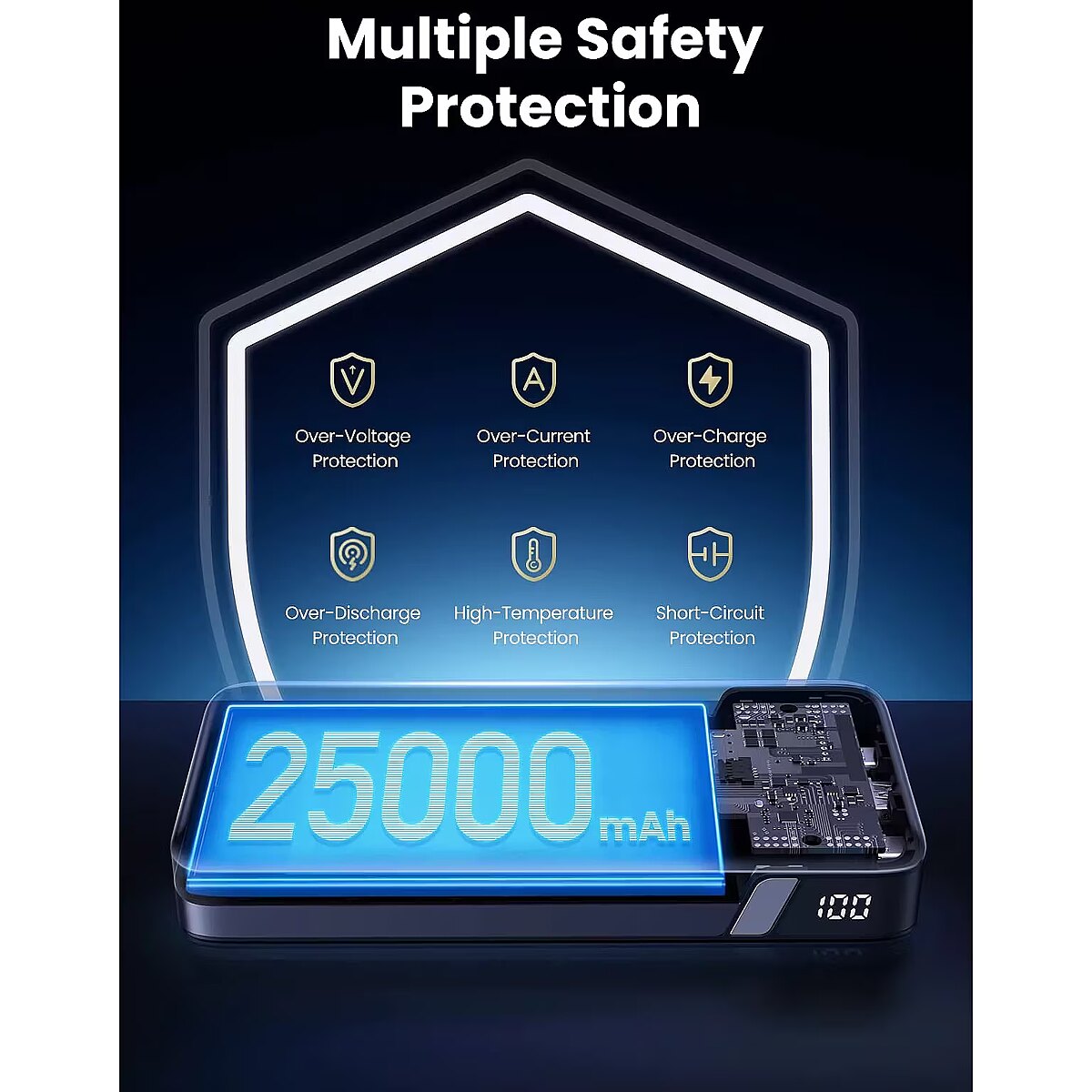 LongDesc - "140W Charging Beast: Lightning-fast PD 3.1 and QC 3.0 technologies for rapid charging. Charge 3 devices in a flash.Massive 25,000mAh Capacity: Get multiple charges for your MacBook Pro 14"", Galaxy S23 Ultra, iPhone 14, and more. Stay powered up for longer.Rapid Recharge: Back to full in just 2 hours with a 65W adapter. Always ready to go.One for all: From laptops to AirPods, this power bank works with all your devices. One for all your needs.Smart & Powerful Design: Compact, with a digital LED screen, and airplane-friendly. Perfect for travel or daily use."