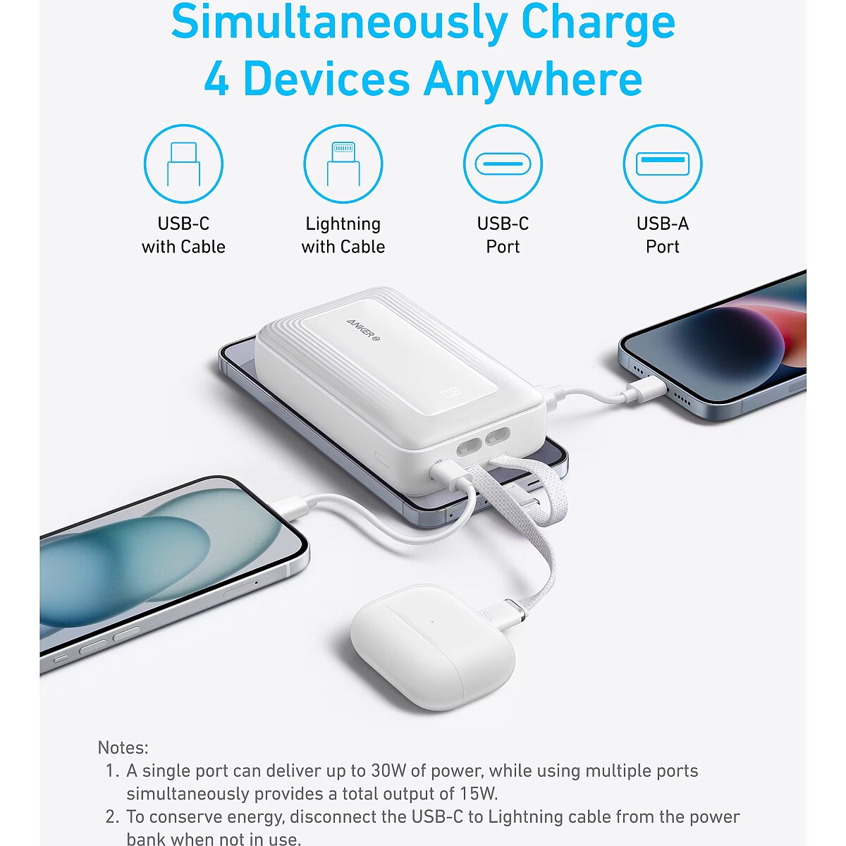 Name - Anker | Power Bank | A1681H21 | 20000 mAh | USB-C 30W, Lightning 27W | Built-In USB-C and Lightning Cables | White