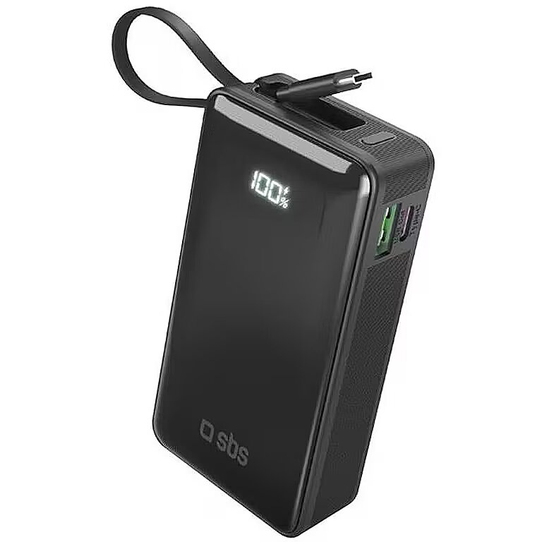 MediumDescription EN - The SBS LCD Power Bank 10,000 mAh provides powerful and secure charging for up to three devices simultaneously. With a built-in USB-C cable and 20W Power Delivery technology, it ensures fast and efficient charging for smartphones, tablets, and other devices. Additionally, the USB-A port is equipped with Adaptive Fast Charge (AFC) technology, which automatically adjusts to the device's power needs. Compact and portable, it’s perfect for travel and daily use.