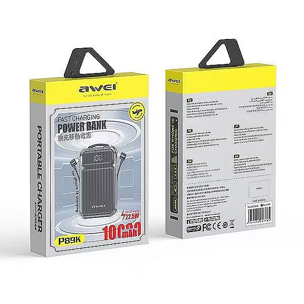 This product Awei Powerbank 10000mAh 38,5 W P89K integra. cables