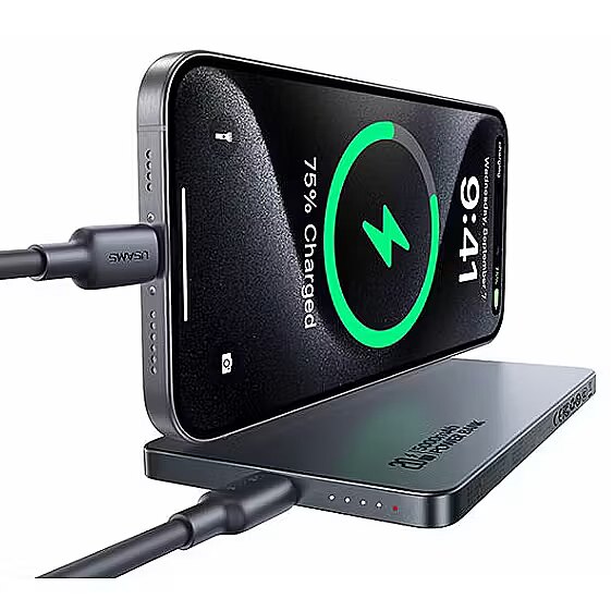 The power bank, measuring just 9 mm thick and weighing 118 g, is a combination of elegance and functionality. Its lightweight design makes it exceptionally handy and easy to carry, perfect for everyday use. The thin casing does not take away its power, offering efficient charging in a compact package.