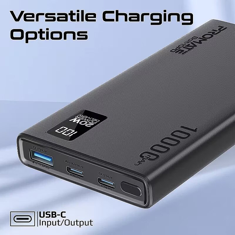 Features: Li-Polymer battery 10,000 mAh: Will charge a smartphone 3 times or a tablet 2 times . The power bank itself can be charged via USB-C port in 3 hours.