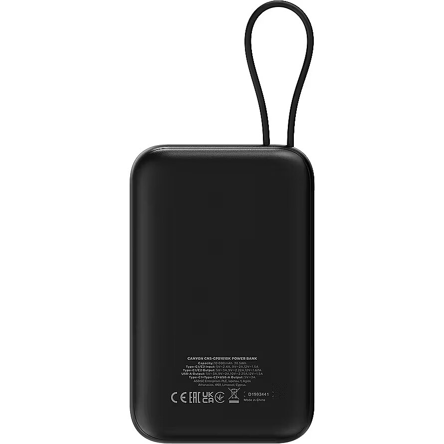 Canyon power bank OnPower 101 built-in cable 10000 mAh PD22.5W Black