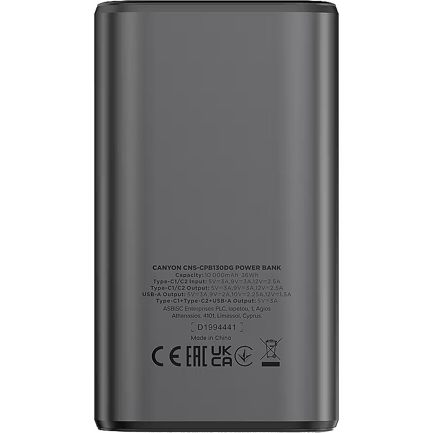 NameInWeb EN - Canyon OnPower 130, 10000 mAh, dark gray - Power bank