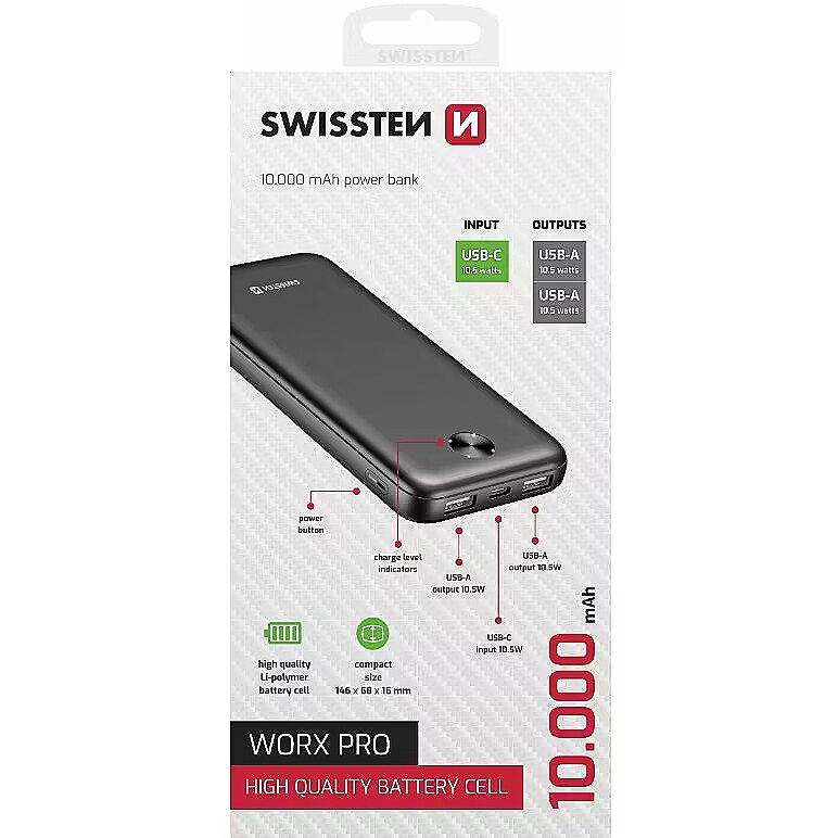 title_ru - Swissten Power Worx Pro Power Bank 10000 mAh