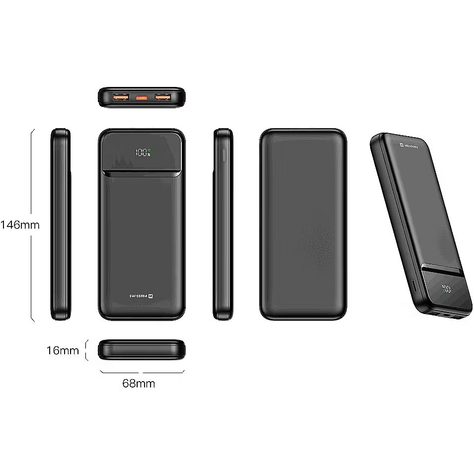 description_en - The SWISSTEN power bank with a capacity of 10,000 mAh will not leave you without power even on the go. Its compact design and LED display for easy battery status check make it a practical companion for everyday use. In addition, it offers a wide range of charging options thanks to multiple outputs and fast charging.