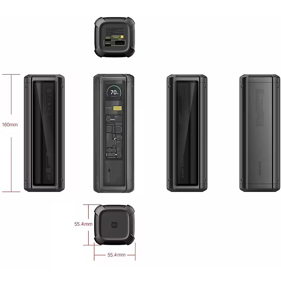 Xiaomi 212W HyperCharge Power Bank o pojemności 25000mAh z dwoma portami USB-C z szybkim ładowaniem 140W i 45W oraz portem USB-A 120W. Posiada kolorowy wyświetlacz oraz szereg rozwiązań, które dbają o bezpieczeństwo użytkowania tego urządzenia. Wyjątkowa bryła obudowy solidność przyciągająca wzrok