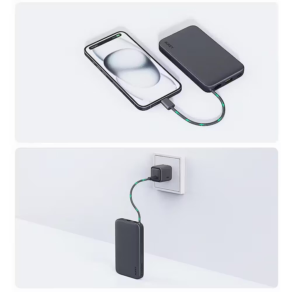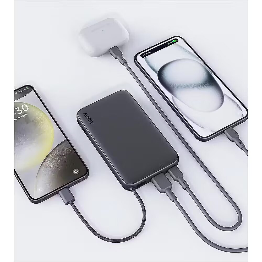 Description - Power bank AUKEY PB-Y53P Spark Sling 10000mAh Lite Plus 22.5W + wbudowany kabel AUKEY Power Delivery USB-C - USB-C + kabel AUKEY Power Delivery USB-C - USB-C Możliwość ładowania 3 urządzeń jednocześnie SZYBKIE ŁADOWANIE DO 20 W: Szybkie ładowanie i doładowywanie 20 W WBUDOWANY KABEL USB-C: Wygoda i smukła konstrukcja ŁADOWANIE WIELU URZĄDZEŃ: Jednoczesne ładowanie 3 urządzeń WIELOKROTNA TECHNOLOGIA OCHRONY: Najnowsza technologia chroniąca urządzenie przed przeładowaniem, przegrzaniem i zwarciem SZEROKA ZGODNOŚĆ Z WIĘKSZOŚCIĄ URZĄDZEŃ Z GNIAZDEM USB-C: takich jak Android, seria iPhone 15 i powyżej, Produkt Apple, Nitendo Switch itp. PRZYJAZNY PODRÓŻOM: Kompleksowa ochrona z certyfikatami zatwierdzonymi przez linie lotnicze