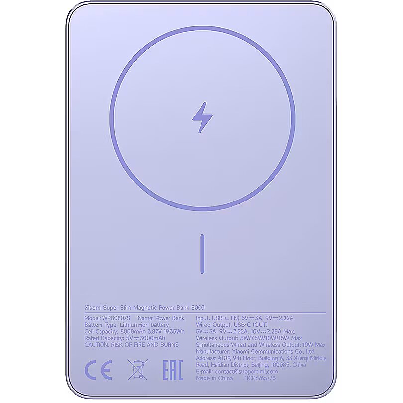 Name - Xiaomi Super Slim Magnetic Power Bank 5000 | 5000 mAh | Purple