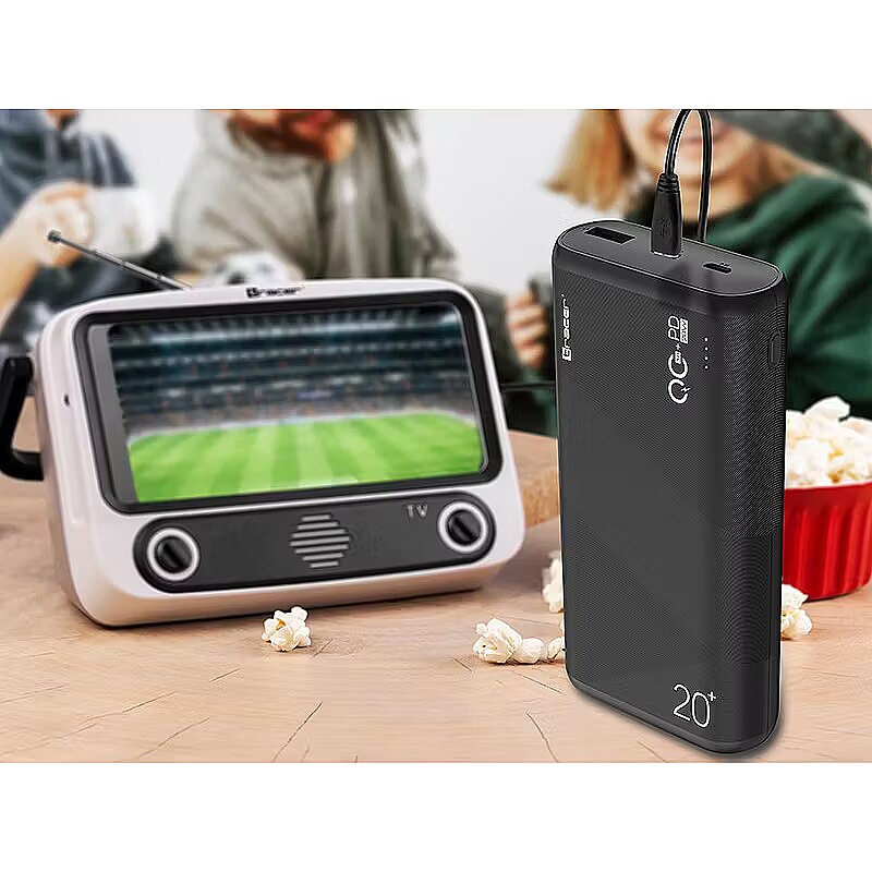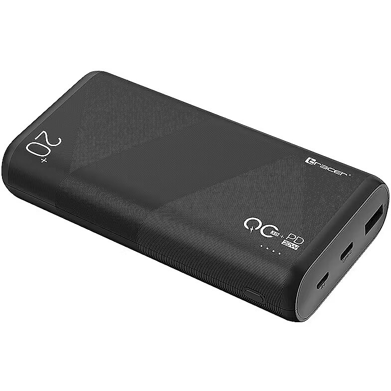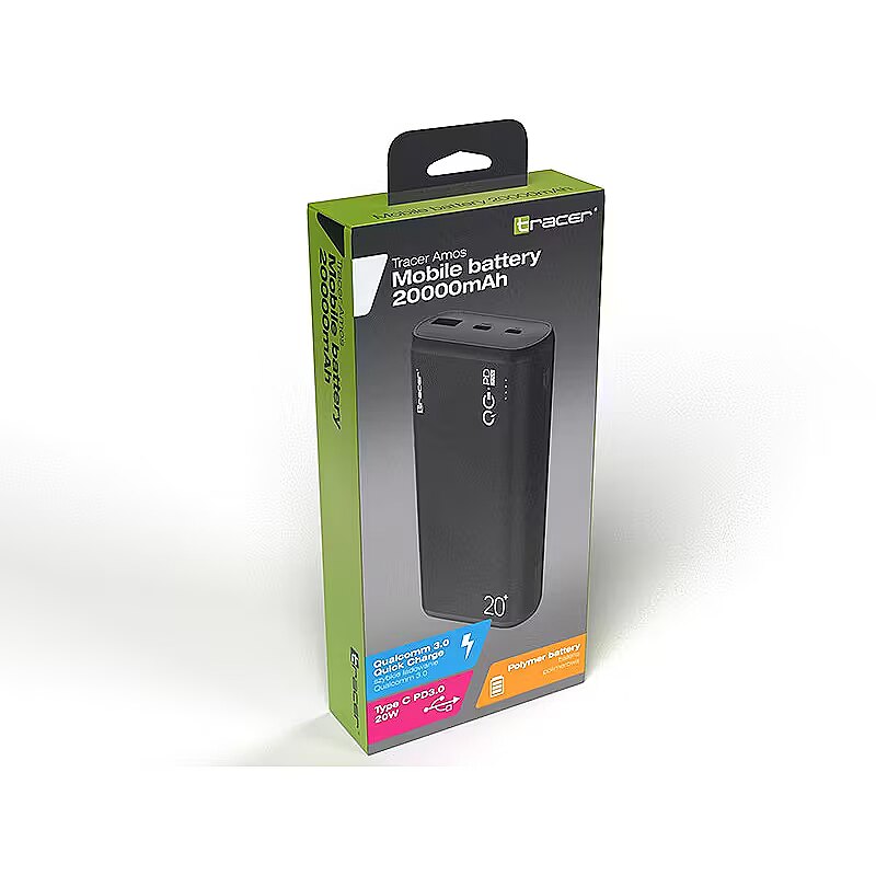 Description - Powerbank Amos 20000mAh QC3.0-PD20W BK black A modern, handy power bank with a capacity of 20,000 mAh ensures a constant supply of energy. You no longer have to worry about running out of battery in your tablet or smartphone while traveling. The device is light and small, so you can easily fit it in your hand luggage. High-quality polymer battery offers stable performance, long working time and safety. An instant boost of energy Polymer cells with a capacity of 20000mAh, thanks to which you can simultaneously charge the Powerbank from the socket and charge mobile devices: a tablet or a smartphone from the Powerbank. Power always at hand With the Tracer powerbank with you, you don't have to worry about your smartphone's battery level dropping. Use the tablet freely, watch movies on the go, listen to music, and whenever necessary, connect the portable Tracer battery and keep using. Forget about the limitations caused by the decrease in energy, you no longer have to worry about the lack of access to power, regardless of where you are. Convenient USB-C connector The Tracer power bank is equipped with a modern USB-C output, thanks to which connecting the device is quick and easy. You don't need to check which side of the connector is up and which is down because the USB-C connector is reversible for convenience. This type of connector also offers more power compared to previous generations of USB connectors, thus accelerating the charging process. Safety guarantee The high-quality polymer cell used in this mobile charger makes the device not only extremely efficient, but also safe to use, which has been confirmed during laboratory tests. Classic design, small dimensions and high quality will appeal to even the most demanding users.