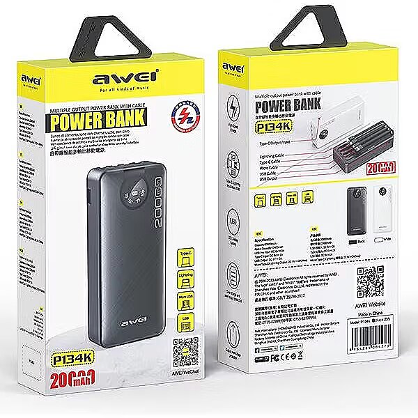 Other features - Battery capacity: 20000 mAh Nominal capacity: 12400 mAh USB input: DC 5V/2A USB-C input: DC 5V/2A USB output: DC 5V/2A Micro USB/USB-C/Lightning output: DC 5V/2A (max.)