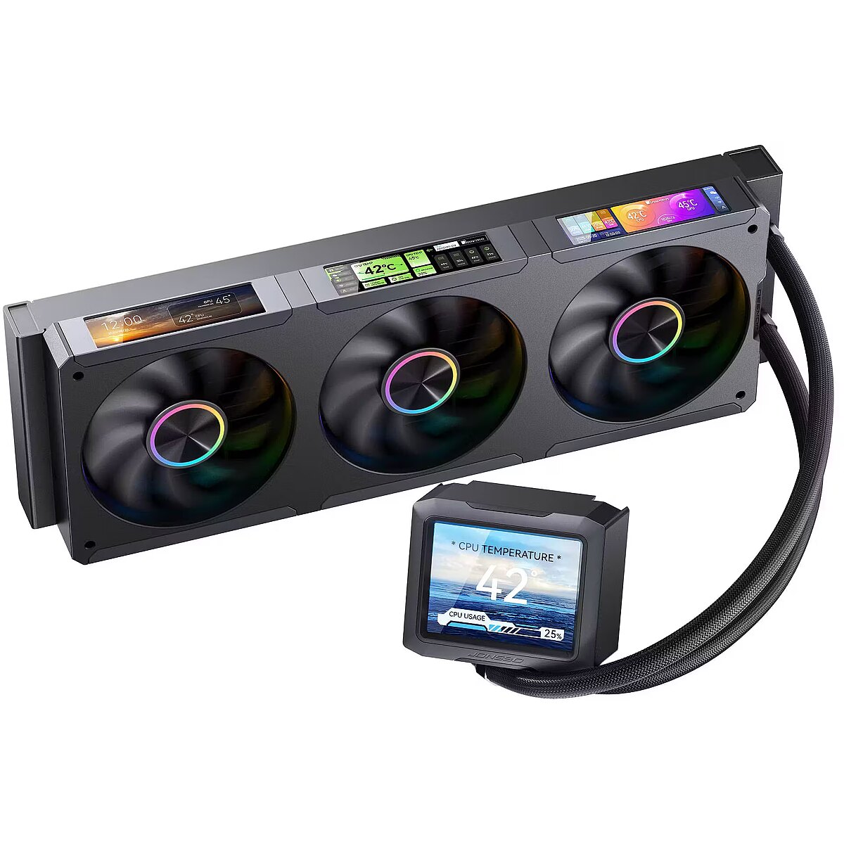 name - Jonsbo TF3-360SCB AiO Wasserkühlung, ARGB, 3,5” + 3x 3,38” LCD - 360mm, schwarz