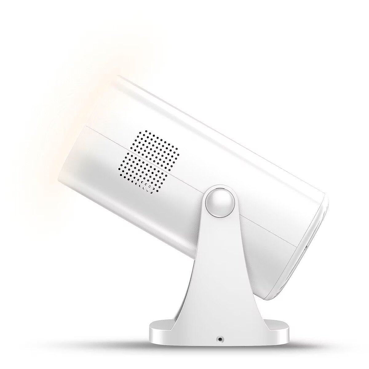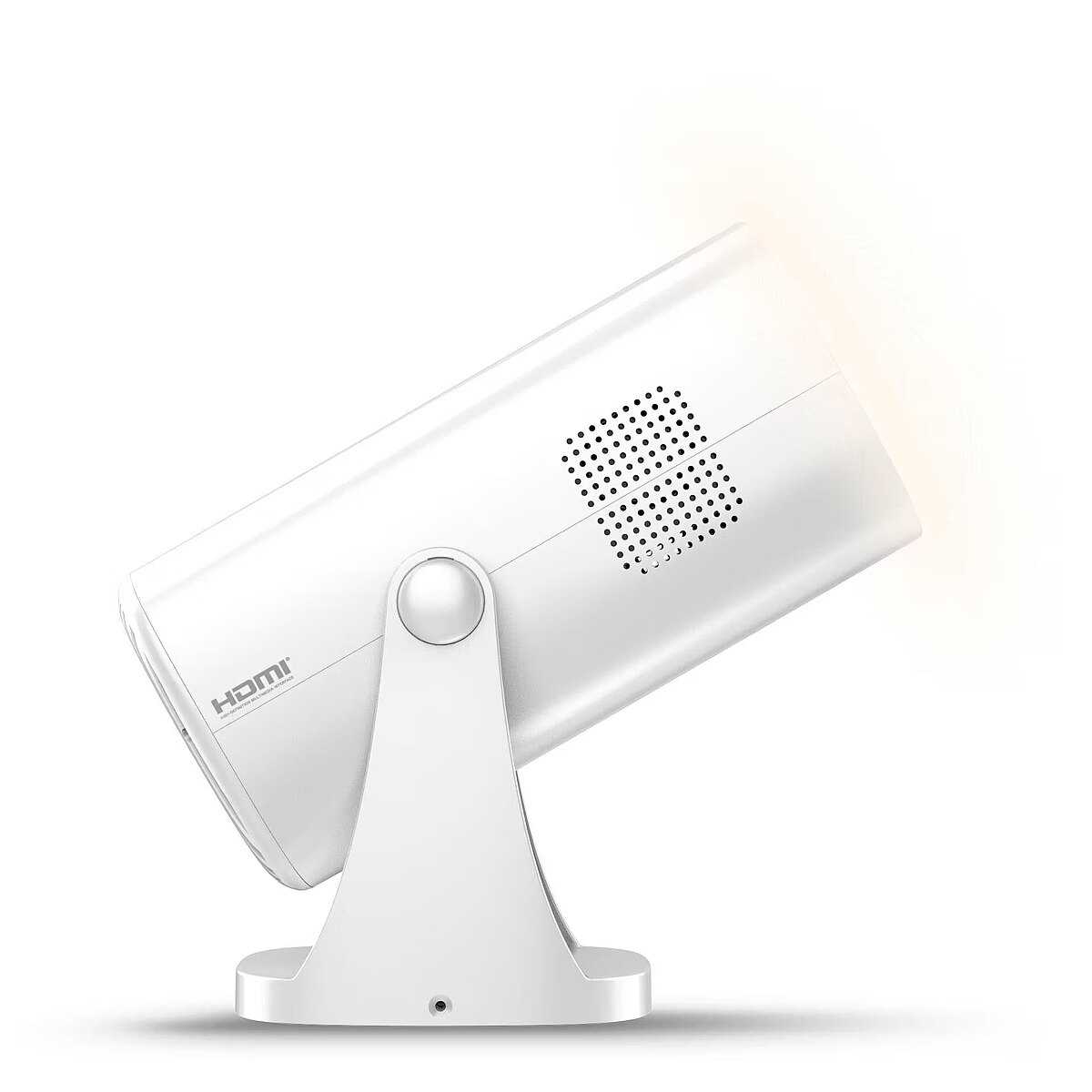 Displays a sharp 80" image in native 1080p, keeping text and details crisp. The rotating stand lets you project in any direction—even straight up to the ceiling.