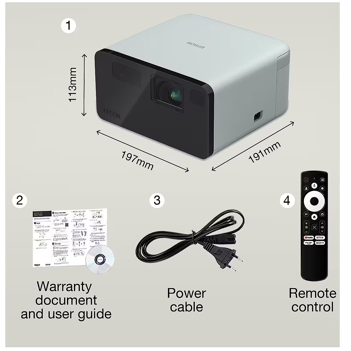 LongDesc - The EF-21W is stylish and compact with a screen size of up to 150 inchesMini smart laser projection TV Even when the projector is placed close to the wall, supersize your favourite films, games and sporting events at home with a screen size of up to 150"Smart home entertainment See 400,000+* movies and TV episodes all in one place. Google TV brings your favourite content from across your apps and subscriptions and organises them just for youLong-lasting solution With this model's long-lasting laser light source, you'll be able to enjoy entertainment for up to 10 years*Superior picture quality Images appear more vivid and bright with Epson's 3LCD technology, up to three times brighter colours than comparable 1-chip DLP projectors*Refreshingly easy to use Plug in, turn on, link up and play. Access instant entertainment at home or on the go.Legal StatementComplies with The UK Product Security and Telecommunications Infrastructure (Product Security) requirements. Epson will provide security updates until 31/07/29 from purchase.Stylish, mini laser projectorThis compact projector comes in smoke ice green and can be projected in any direction - on a wall, ceiling or floor. The simple usability, setup and portability means you can enjoy entertainment on the go.Bigger is betterCreate the big screen experience wherever you want with an impressive display of up to 150 inches. With Epson's equally high White and Colour Light Output images are clear, sharp and content is brought to life.Smart home entertainmentEverything you stream. All on one screen. Access 400,000+* movies and TV episodes, all in one place. Google TV™ brings your favourite content from across your apps and subscriptions and organizes them just for you. Ask Google Assistant to find movies, stream apps, play music and control your projector - all with your voice*. Easily cast movies, shows, photos, and more from your phone or tablet, right to your projector with Google Cast*. The built-in 5W Bluetooth speakers can be used with or without a visual display.Long-lasting solutionThe long-lasting laser light source will provide lower energy consumption, and you'll be able to enjoy home entertainment for up to 10 years*.High-quality, sharp imagesThis powerful yet affordable mini laser projector delivers exceptionally bright yet colourful images with clear details. It's 5,000,000:1 contrast ratio also produces clearly defined shadows and deep blacks. Epson's 3LCD technology means it's projectors have up to three times brighter colours than comparable 1-chip DLP projectors*.Simple set up - plug and playIncluded technologies such as automatic focus, keystone correction, obstacle avoidance and screen fit mean you enjoy instant entertainment at home or on the go. Simply power on the projector and let it find the best suitable screen size to fit your surroundings.