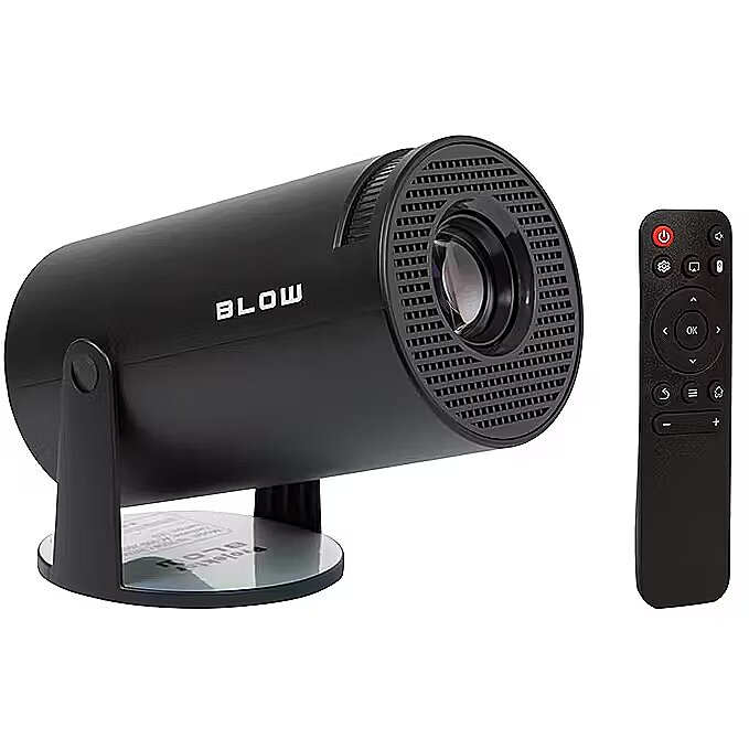 The BLOW projector is a modern device that allows you to watch movies, shows, games, and other multimedia content on a large screen. The projector comes with a built-in Android 13 operating system, which provides access to numerous apps and online services. You can connect to the projector via Wi-Fi, Bluetooth, HDMI, USB, or AV. The projector has a native 720p resolution and supports 4K decoding, ensuring high image quality. A brightness of 250 ANSI lumens and a contrast ratio of 1500:1 ensure clear and vibrant images, even in dimly lit rooms.