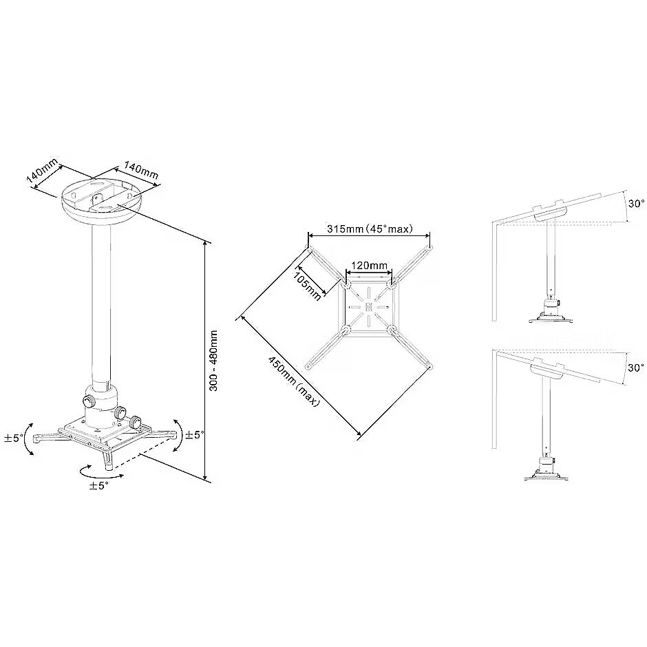 LongDesc - Industry-leading projector mounts with fine tune technology for ceiling installations.The M Universal Projector Ceiling Mount 300-480 with Fine tune give you easy placement of your projector in the most discreet setting possible. You can orient and incline according to several axes. The model features cable-masks, height adjustment, and easy fine tune settings adjustments, once the projector is in place. This projector mount has a minimum of surface area to the projector good for not trapping heat close to your projector thus not cutting your projector lamps lifetime.The built in fine tune technology provides easy fingertip positioning capabilities which automatically adjusts the projectors position. That way you can always be sure to get a well balanced position for your projector after installing it. This does not only save installation time but also make room for possible changes of what projector is being used or how your projection screen is positioned, perfect if you anticipate changing projectors in the future. The arms holding the projector are articulated and telescopic to adopt to almost all projector models.Fine tune the projectors position with millimeter precision. Multibrackets Projector Ceiling Mount series 200/ 300-420/ 500-800/ 600-1000/ 900-1600/ 1600-3000 with Fine tune offers an industry-leading projector mount for ceiling installations. The series minimizes installation time, simplify maintenance and offers a sought after fine tune adjustment alignment with 3-axle angles. This model also offers the an anti-theft security feature.There is a reason why this series of projector mounts quickly has become one of Multibrackets top selling product lines.