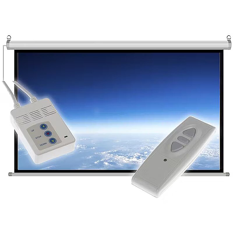 - The electric screen, controlled by the remote control, allows it to be stopped at any height