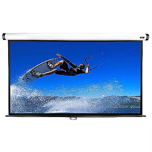 Technical details > Other features - The Elite Manual Pull-down Series front projection screen is a cost effective retractable screen with a dual case design for wall or ceiling installation.Elite Screens’ MaxWhite Screen Material is durable for daily use and easy to clean. It has a wide viewing angle with 1.1 Gain and is suitable for most applications including Commercial /Educational and Residential. MaxWhite Screen material has a black backing to eliminate light penetration for superior color reproduction. Its Texture pattern eliminates Moiré or Hot Spotting which is a common phenomenon with poorly made projection screen material or wall projections.