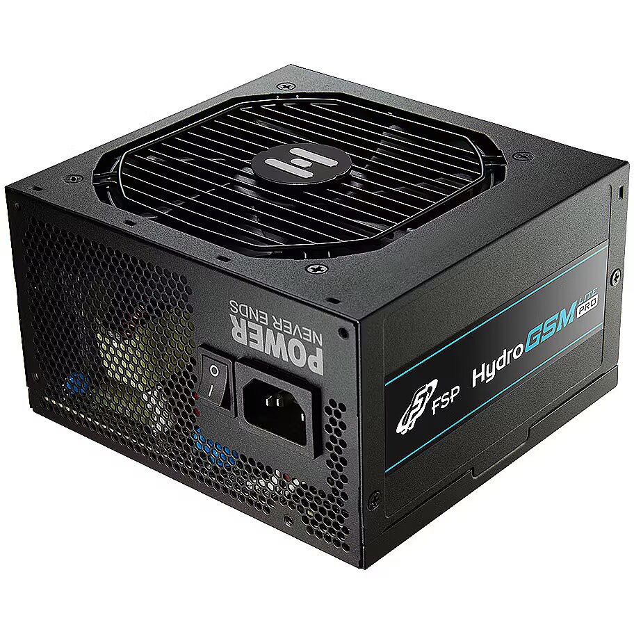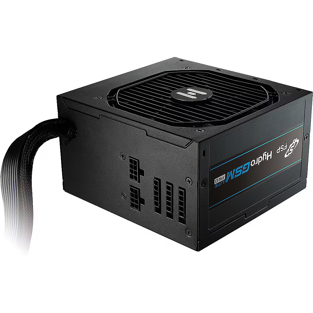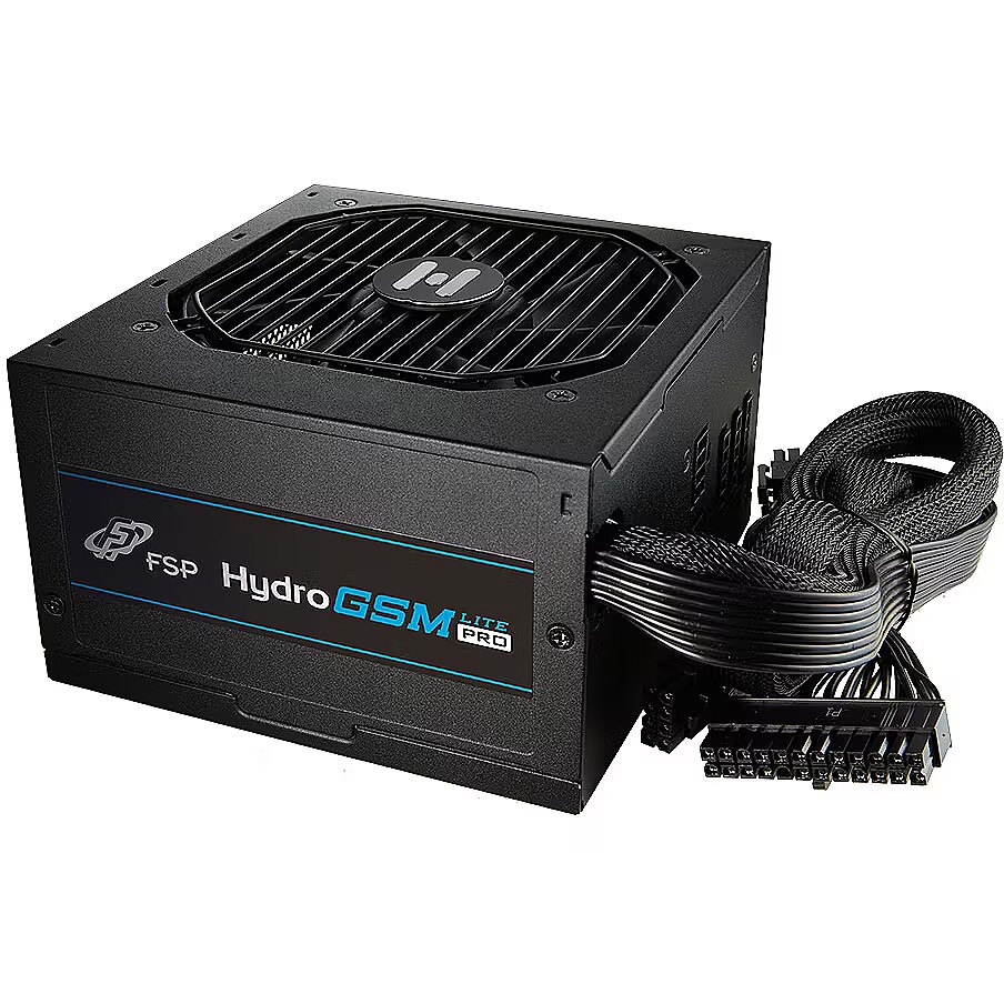 LongSummaryDescription - FSP Hydro GSM Lite PRO 750W. Total power: 750 W, AC input voltage: 100 - 240 V, AC input frequency: 50 - 60 Hz. Motherboard power connector: 20+4 pin ATX, Cabling type: Non-Modular. Purpose: PC, Power supply unit (PSU) form factor: ATX, 80 PLUS certification: 80 PLUS Gold. Product colour: Black, Cooling type: Active, Fan diameter: 12 cm. Cables included: CPU, PCIe, Peripheral (Molex), SATA