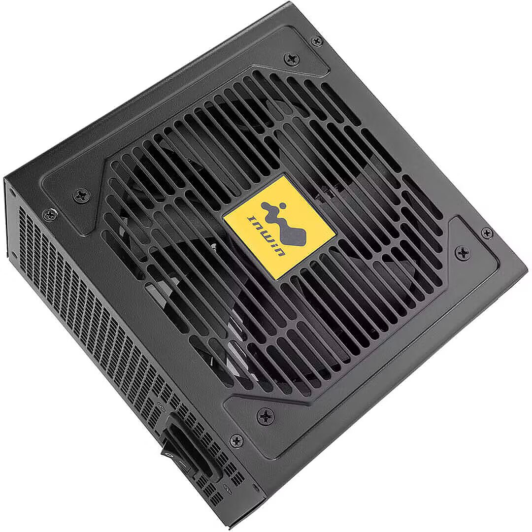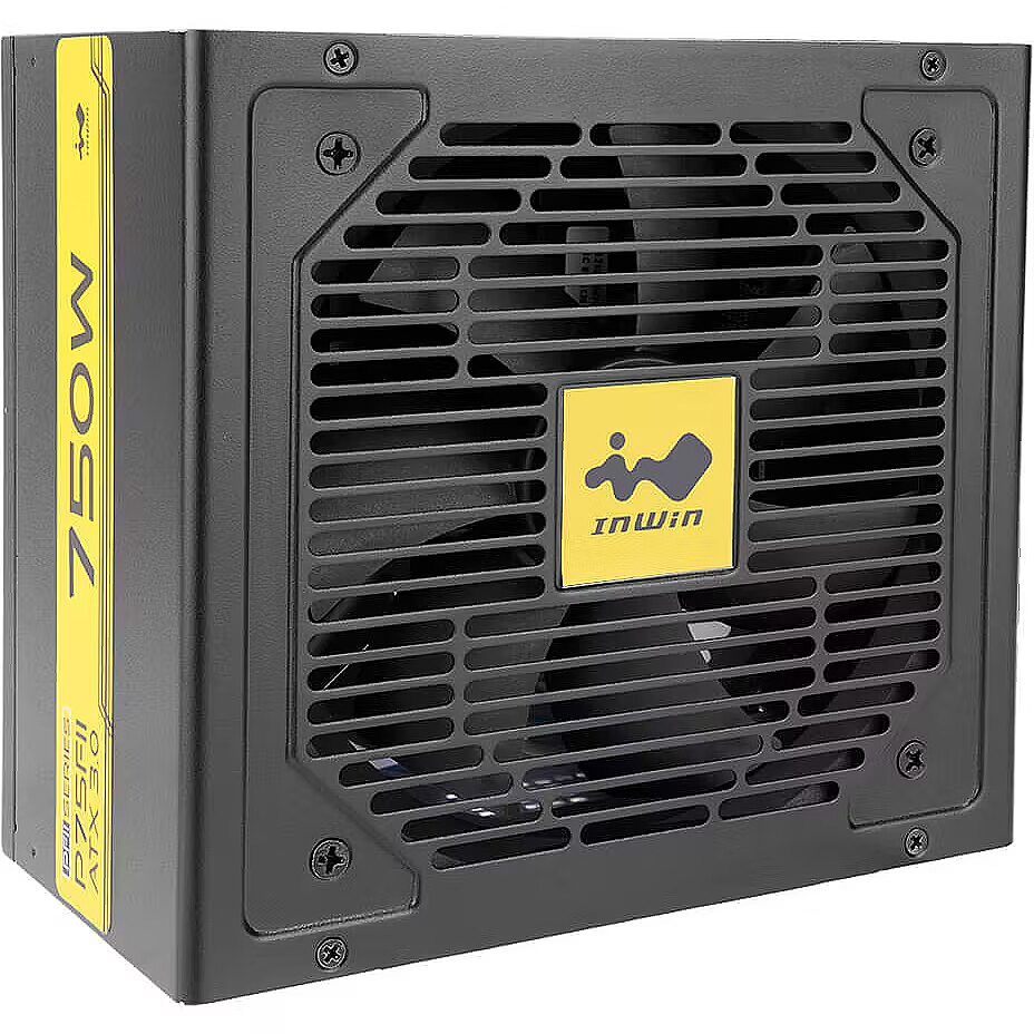 This InWin brand power supply unit has an 80 PLUS Gold energy efficiency certificate and a power output of 750W.
