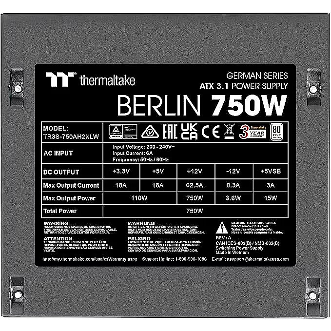 Thermaltake Berlin, 750W, 80 PLUS White, ATX 3.1