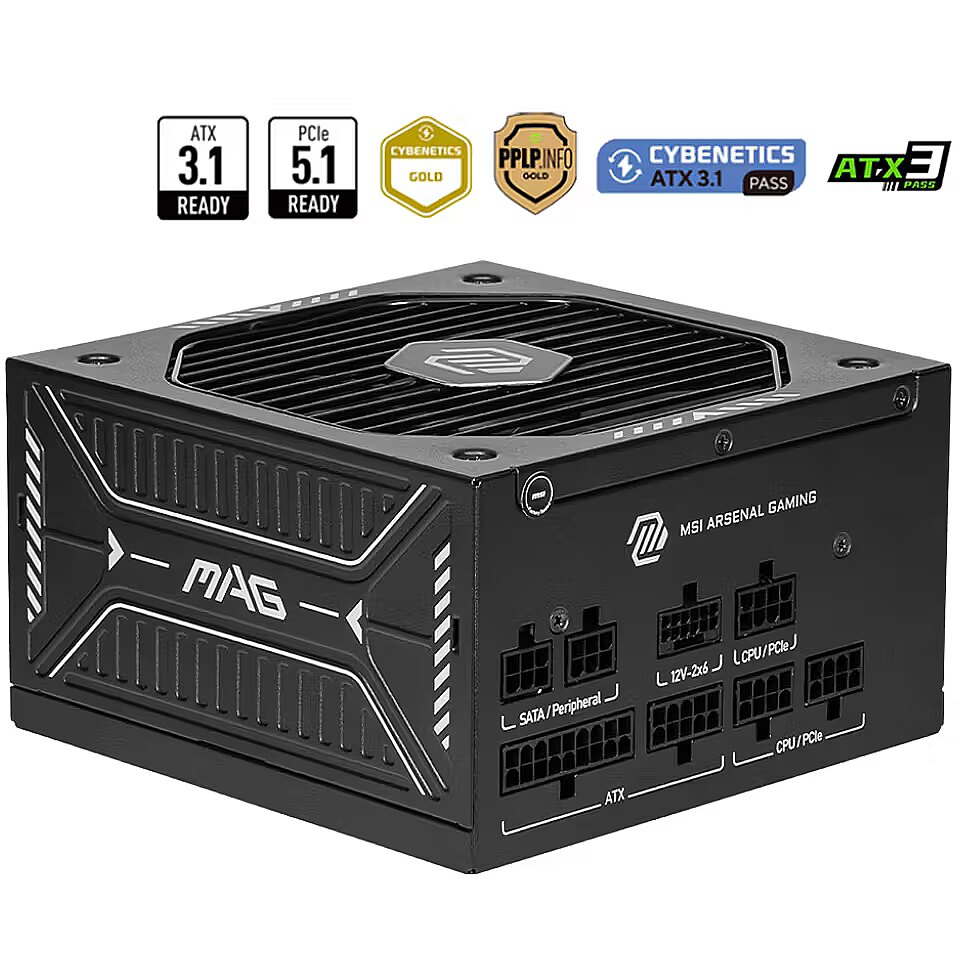 MSI MAG A750GLS PCIE5, 750W, 80PLUS Gold, ATX 3.1, PCIe 5.1