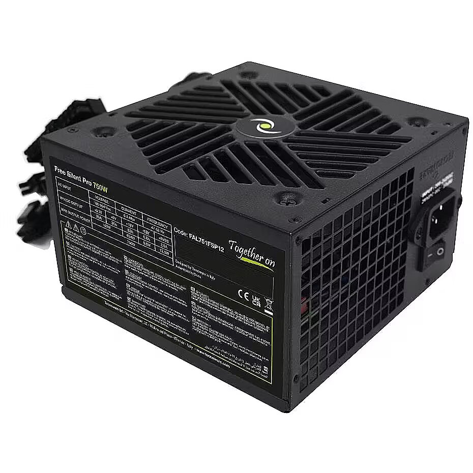 Summary - Tecnoware FAL751FSP12. Total power: 750 W, AC input voltage: 180 - 264 V, AC input frequency: 47 - 63 Hz. Motherboard power connector: 24-pin ATX. Purpose: PC, Power supply unit (PSU) form factor: ATX. Product colour: Black, Cooling type: Active, Fan diameter: 12 cm. Width: 150 mm, Depth: 140 mm, Height: 86 mm