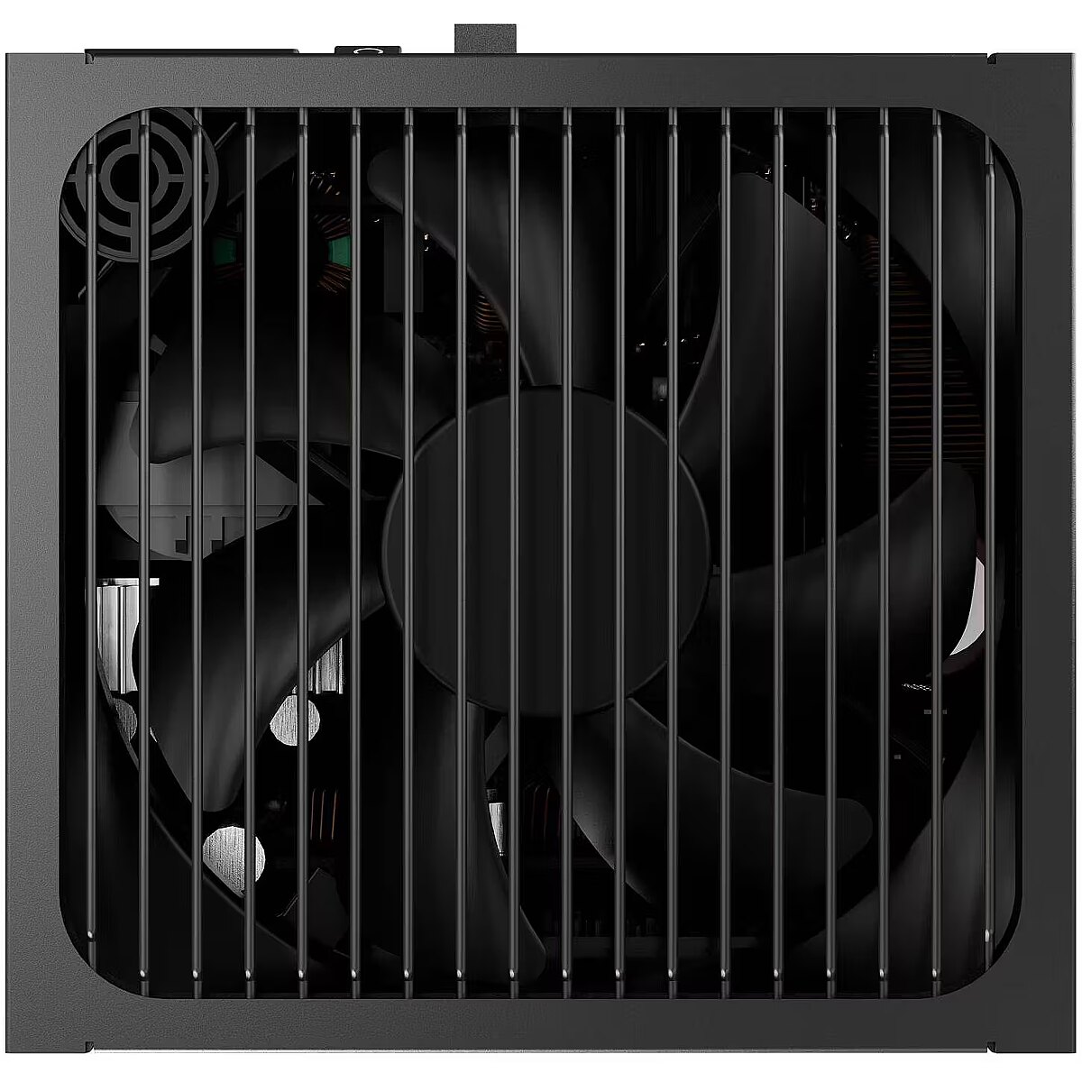 This power supply is equipped with an exceptionally large 135 mm fan. Thanks to the larger blade size, it provides better airflow at lower speeds and quieter operation compared to standard 120 mm fans.
