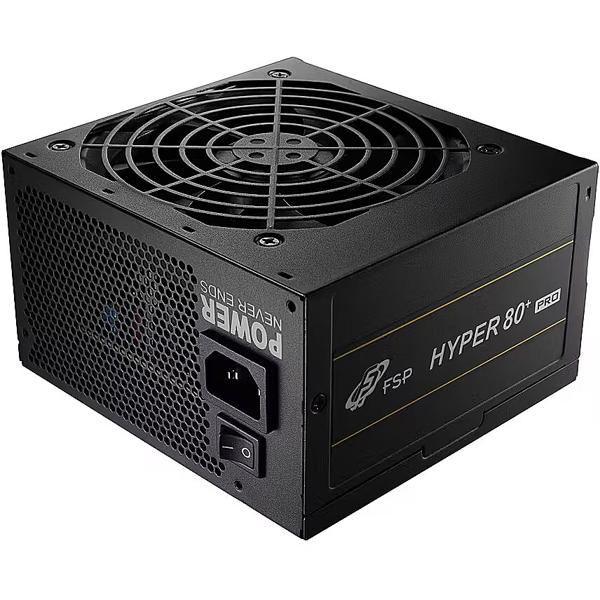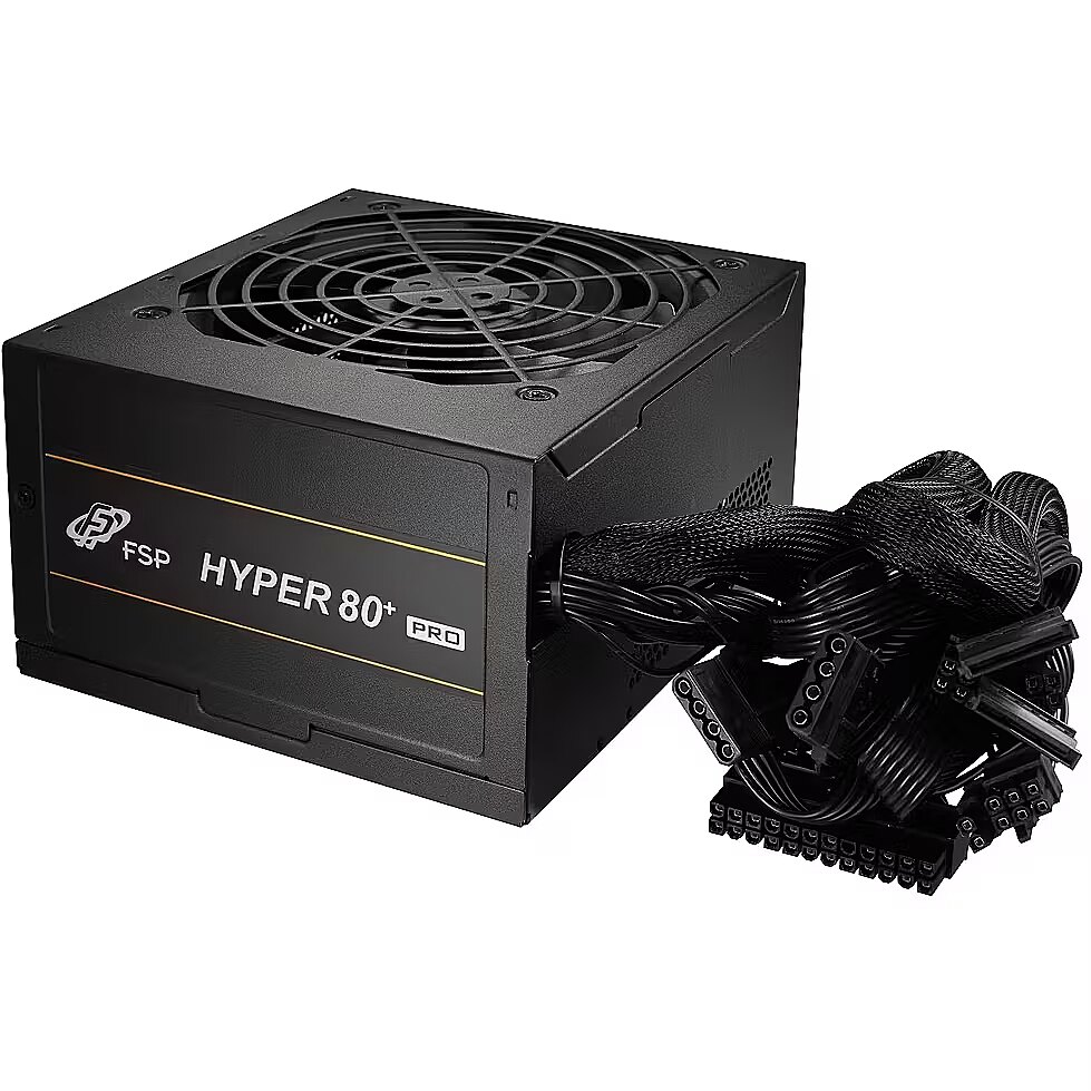 LongDesc - The new HYPER 80+ Pro PSUs comply fully ATX 12 v2.52 standard and latest safety 62368 regulation as well, and features with all black and high-grade ribbon cables, will give your PC a polished look. The HYPER 80+ Pro series is characterized by a powerful single +12V rail design that continually delivers maximum performance for the most demanding components, while FSP’s custom DC-DC design provides safety and power efficiency. With an 230V 80 Plus™ rating, both models deliver over 85% high efficiency and low noise levels thanks to its thermal control fan design, where a large 120mm fan takes care of cooling duties when required, making it excellent for situations that are sensitive to size and noise.80 Plus® 230V EU White CertificationHYPER 80+ PRO series, 80 PLUS® 230V EU White certified, saves energy through its high efficiency up to 82% and excesses the standard through its high efficiency up to 85%.DC-to-DC Module DesignWith a 12V SR circuit and the DC to DC structure, HYPER 80+ PRO series ensure you outstanding conversion efficiency and provides stable output voltage.450V 105C, Heavy-duty capacitorThe bulk capacitor inside serves to support working under an extremely harsh environment, such as with high temperatures, peak voltage fluctuations. It stabilizes the performance for high reliability that your system can count on.Energy Related ErP/Eup 2013Green Power! The total AC power consumption of the completed system is less than 5Vsb rail to support the new EU Regulation ErP 2013 for modern day systems.Keep in Compliance IEC 62368FSP Group provides a full kinds of additional safety approvals to keep designs ahead of the changing regulations. FSP has upgraded the majority of power supplies to the new IEC 62368 standard for your gaming rigs.Intelligent Fan Speed ControlAn advanced thermal control fan makes optimal cooling and reduces noise under maximum operation.120mm fan and heat dissipation design to spin quietly and keep cooling under maximum operation.All Black Round CablesThe all black coating round cables give your system a superior look rather so many entry-level power supplies.