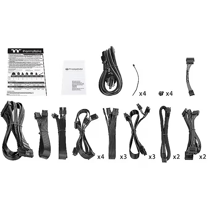 This Thermaltake brand power supply unit has an 80 PLUS Gold energy efficiency certificate and a power output of 1650W.
