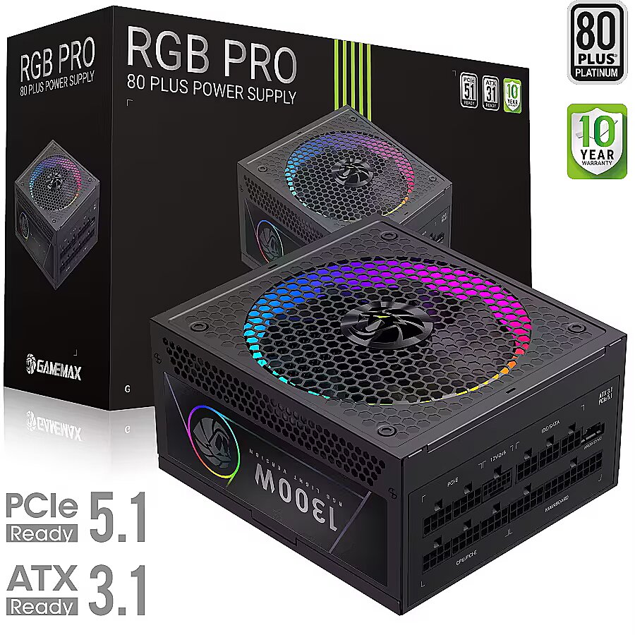 Gamemax RGB PRO 1300P, 1300W, 80PLUS Platinum, ATX 3.1, PCIe 5.1