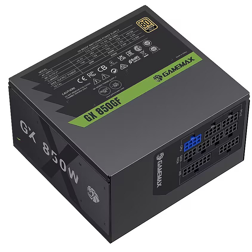 We offer to purchase a Gamemax power supply unit with a power capacity of 850W, which has received the 80 PLUS Gold energy efficiency certification.
