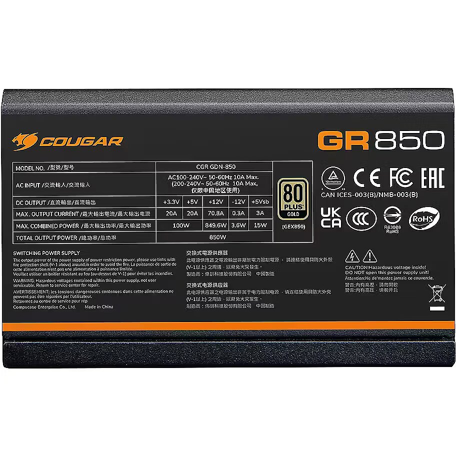 ProductDescription - COUGAR GR 850 PSU 80plus Gold Fully Modular