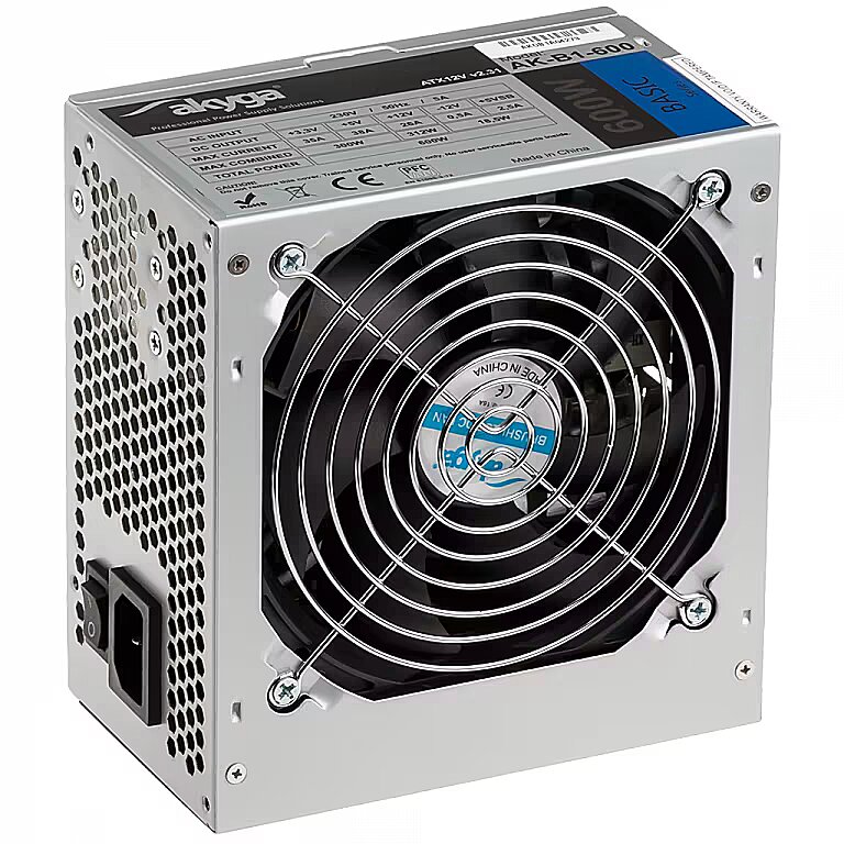 Description - Akyga AK-B1-600 ATX power supply 600W is one of the basic power supplies in our offer dedicated to power desktop computers. Made of high quality components, the power supply has a 4x SATA connectors, 2x MOLEX connectors, mini-MOLEX connector, P4 4-pin connector, PCI-E 6+2-pin connector, EPS12V 4pin connector and an universal 24-pin motherboard connector. Supports ATX 12V 2.0specifications, so it can be used with current and next generation of platforms with multi-core processors. Silent 12 cm fan with chromed grill provide efficient cooling. Manual on/off switch allows for safe power cut off without the need of disconnecting the network cord. High efficiency and stable operation of the power supply affects the reliability of all computer components. Several important protectors (OVP, OCP, OPP, OTP, SCP) and PFC filter protect and prevent main computer parts from damage and stabilize the operation of the power supply so that it works without any unwanted interference.