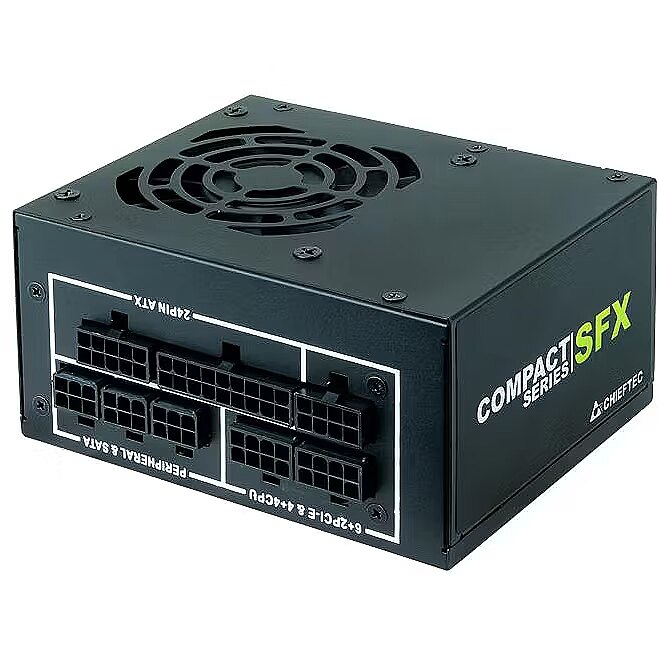 LongSummaryDescription - Chieftec CSN-450C. Total power: 450 W, AC input voltage: 100 - 240 V, AC input frequency: 47 - 63 Hz. Motherboard power connector: 20+4 pin ATX, Cabling type: Fully-Modular. Purpose: PC, Power supply unit (PSU) form factor: SFX, 80 PLUS certification: 80 PLUS Gold. Product colour: Black, Cooling type: Active, Fan diameter: 8 cm. Compliance certificates: RoHS