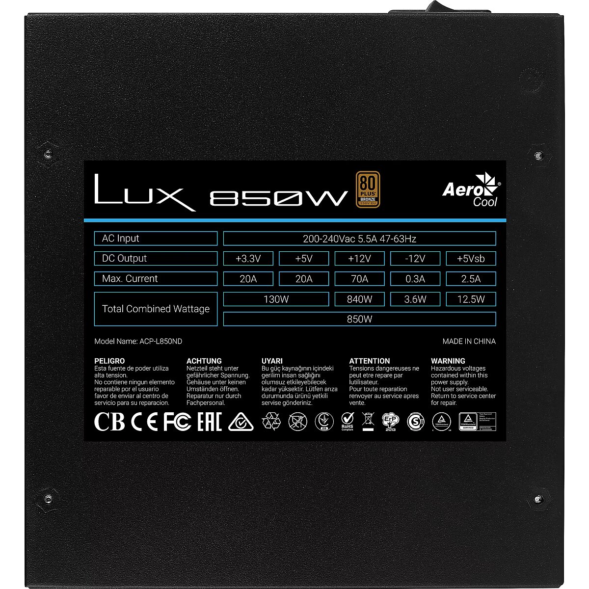 productName - Aerocool LUX850 PC Power Supply 850W 80 Plus Bronze 230V 88% Efficiency Black